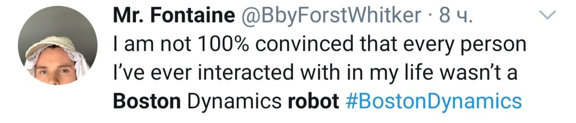 «Я теперь не уверен на 100%, что кто-нибудь из людей, с которыми я общался в жизни, не был роботом»