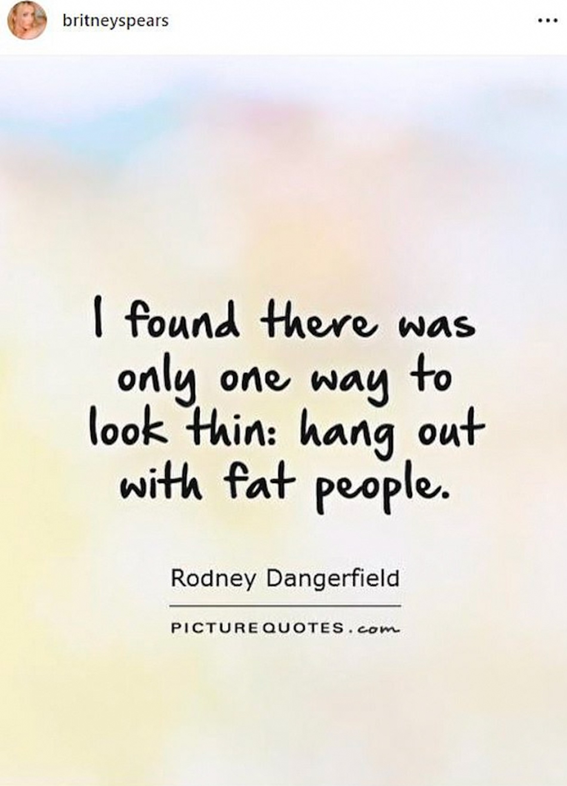 У Бритни Спирс ни дня без скандала. На этот раз в центре внимания пост, который подписчики расценили как бодишейминговый. Бритни опубликовала цитату, которая гласит: «Я поняла, что есть только один способ выглядеть худым — окружить себя толстыми людьми». При этом певица явно имела в виду свою вечную соперницу Кристину Агилеру и ее группу подтанцовки. Говорят, что после этого заявления в запрещенной сети от Бритни отписались еще надавно тусовавшиеся на ее свадьбе Пэрис Хилтон, Селена Гомес и Донатела Версаче. И, как утверждают таблоиды, сама Агилера.