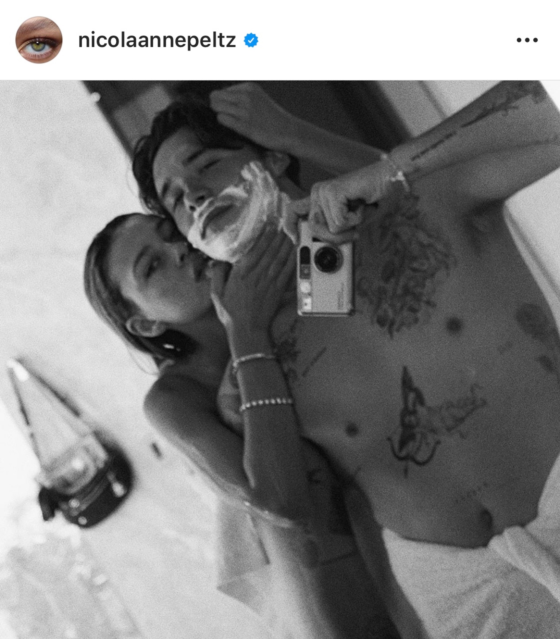 Примечательно, что в Инстаграме Николы помимо снимков, где Бруклин держит ее за шею, есть и те, где то же самое по отношению к нему делает сама девушка, однако удалять их она пока не собирается.