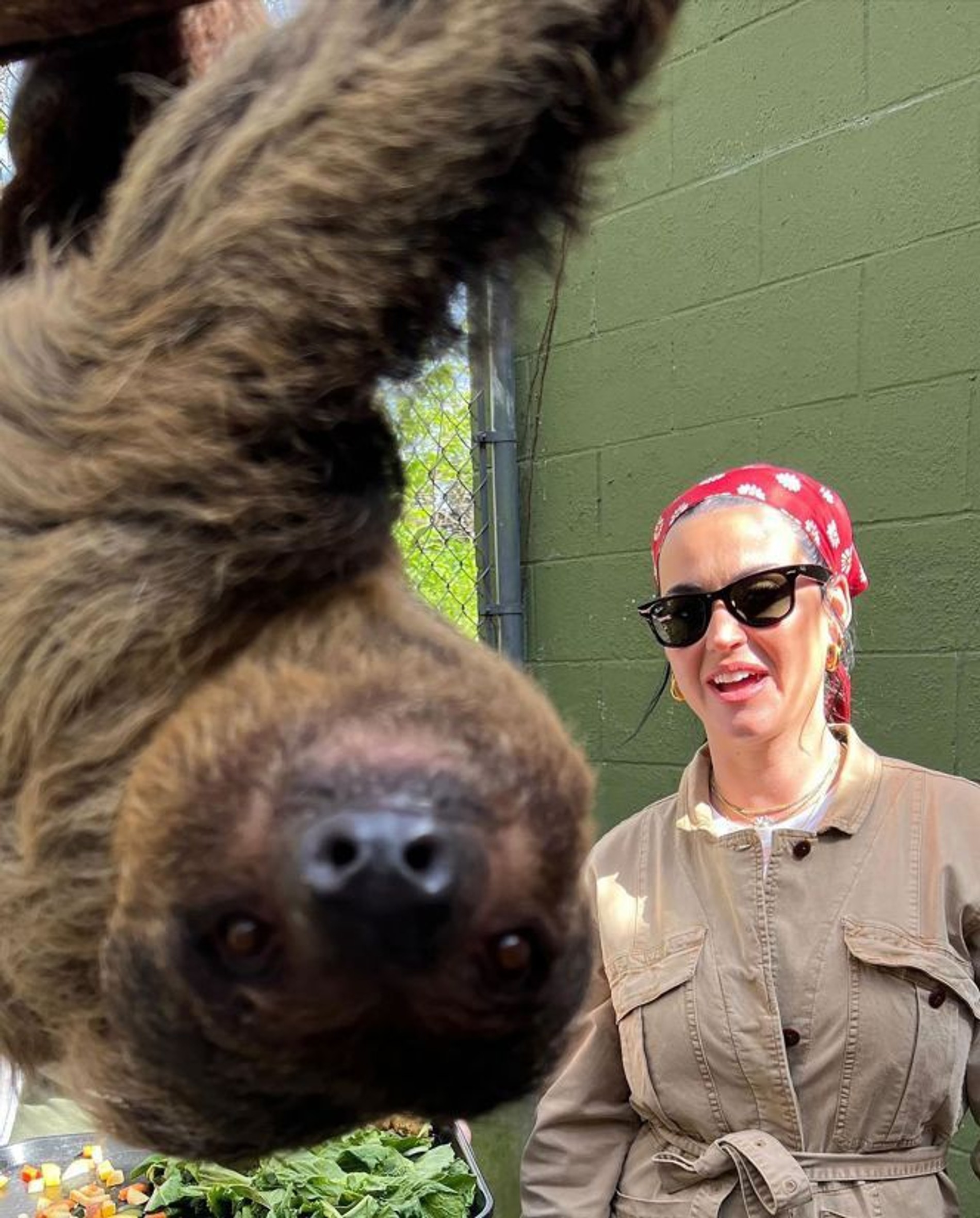 Даже не знаем, кто главная звезда этой фотографии: милейший ленивец или как всегда лучезарная Кэти Перри?