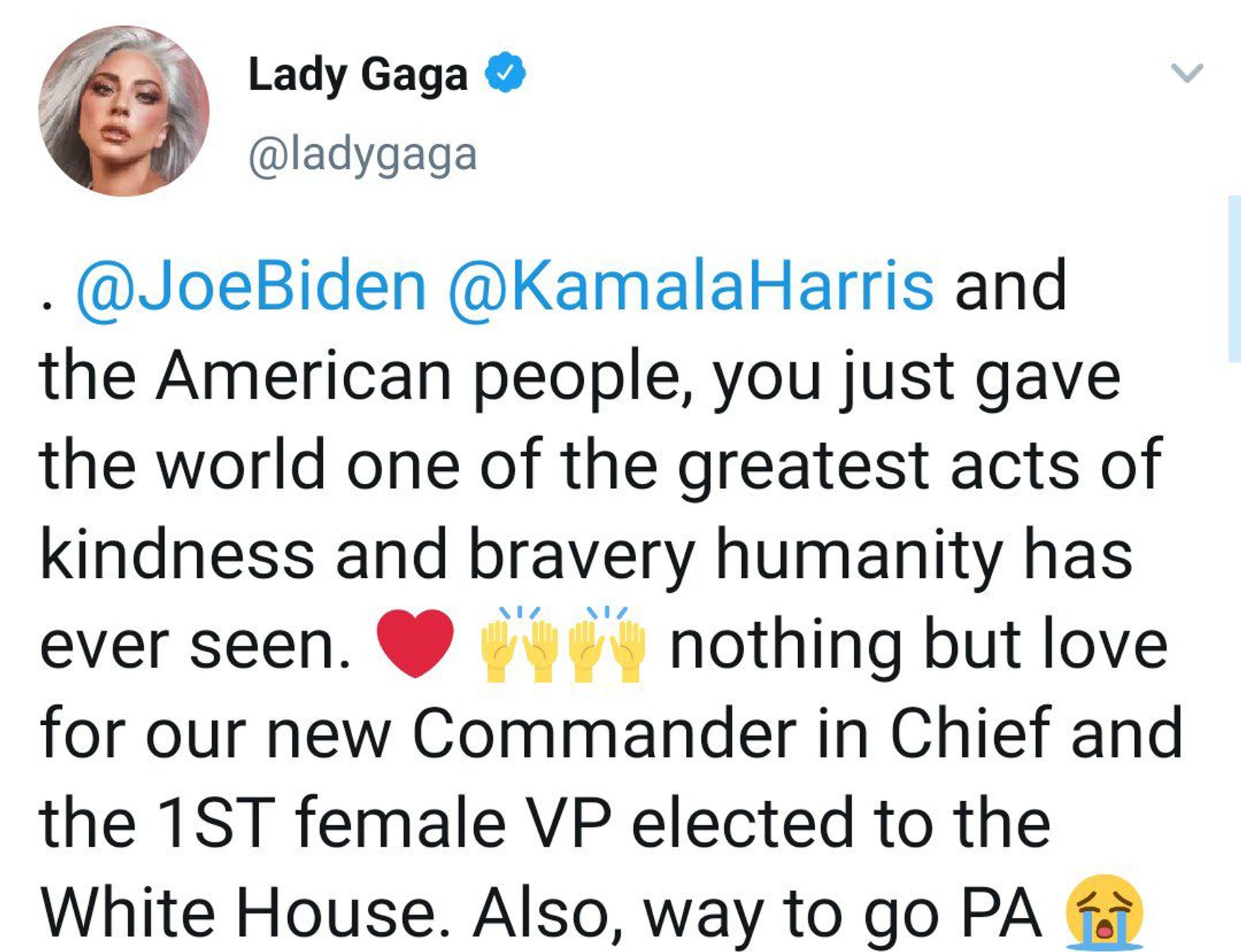 Певица Леди Гага никогда не скрывала свою нелюбовь к Трампу, так что избрание нового главы государства она восприняла очень эмоционально.