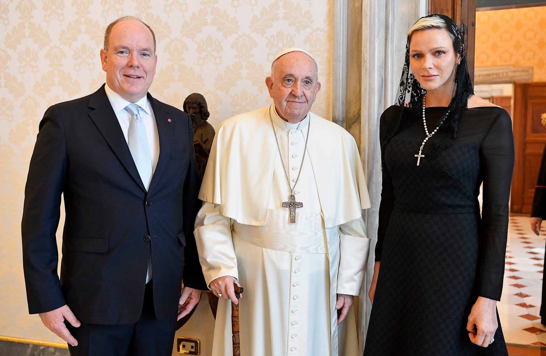 В Сети обсуждают монакскую принцессу Шарлен в образе молодой вдовы на встрече с папой римским