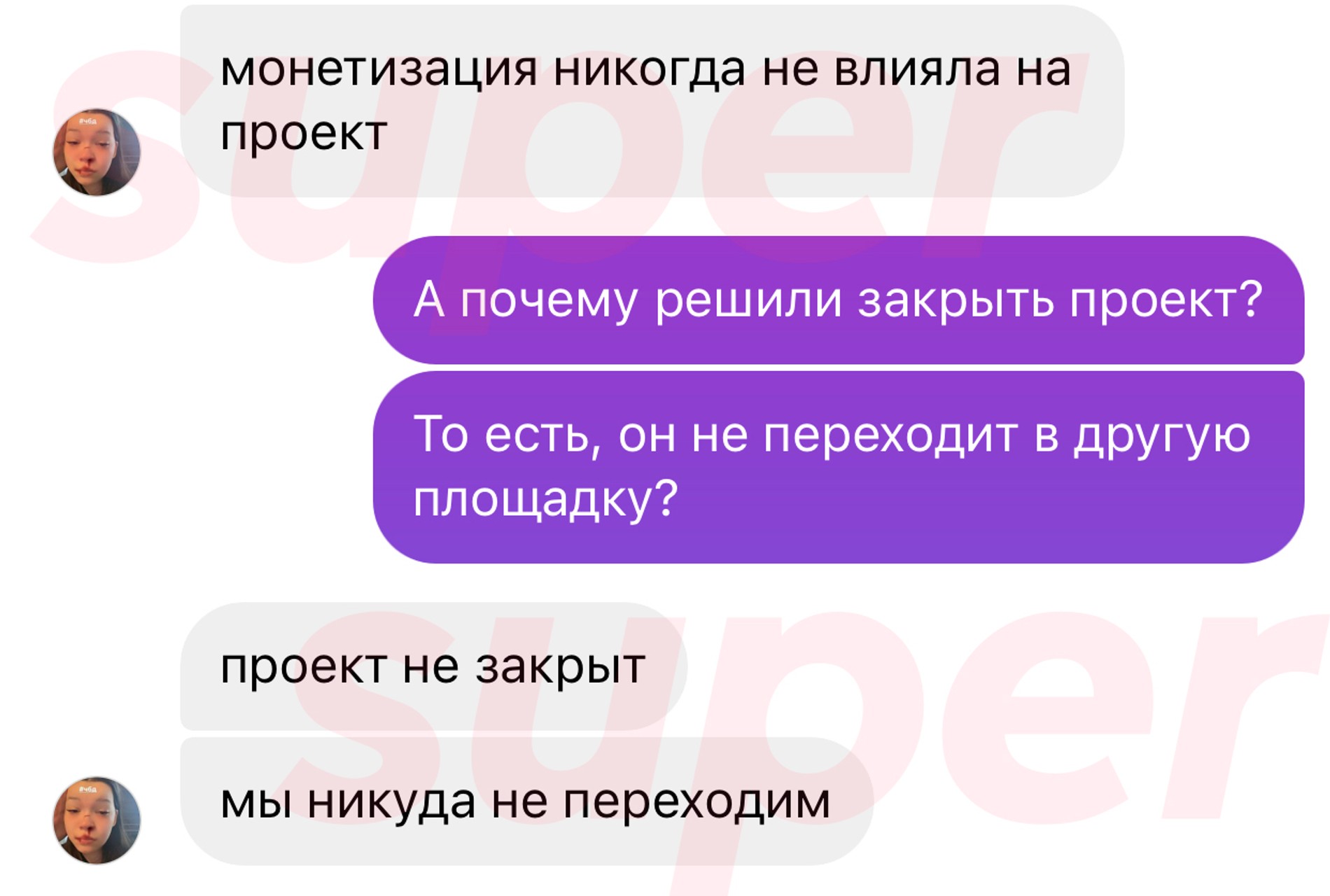Super связался с продюсером шоу «Что было дальше?» Дарьей Морозовой. Девушка рассказала, что проект на самом деле не закрыт и не уходит с площадки YouTube.