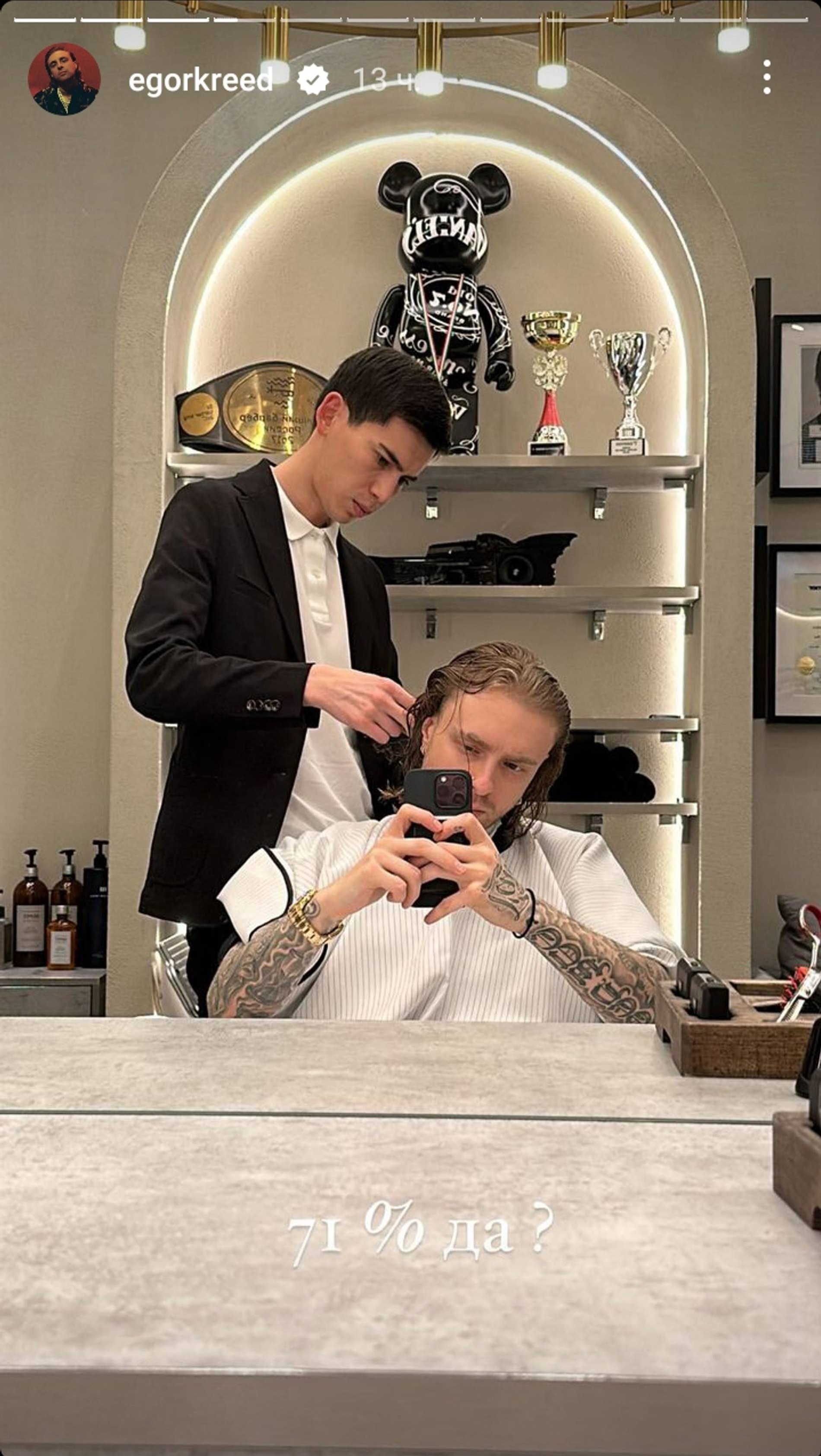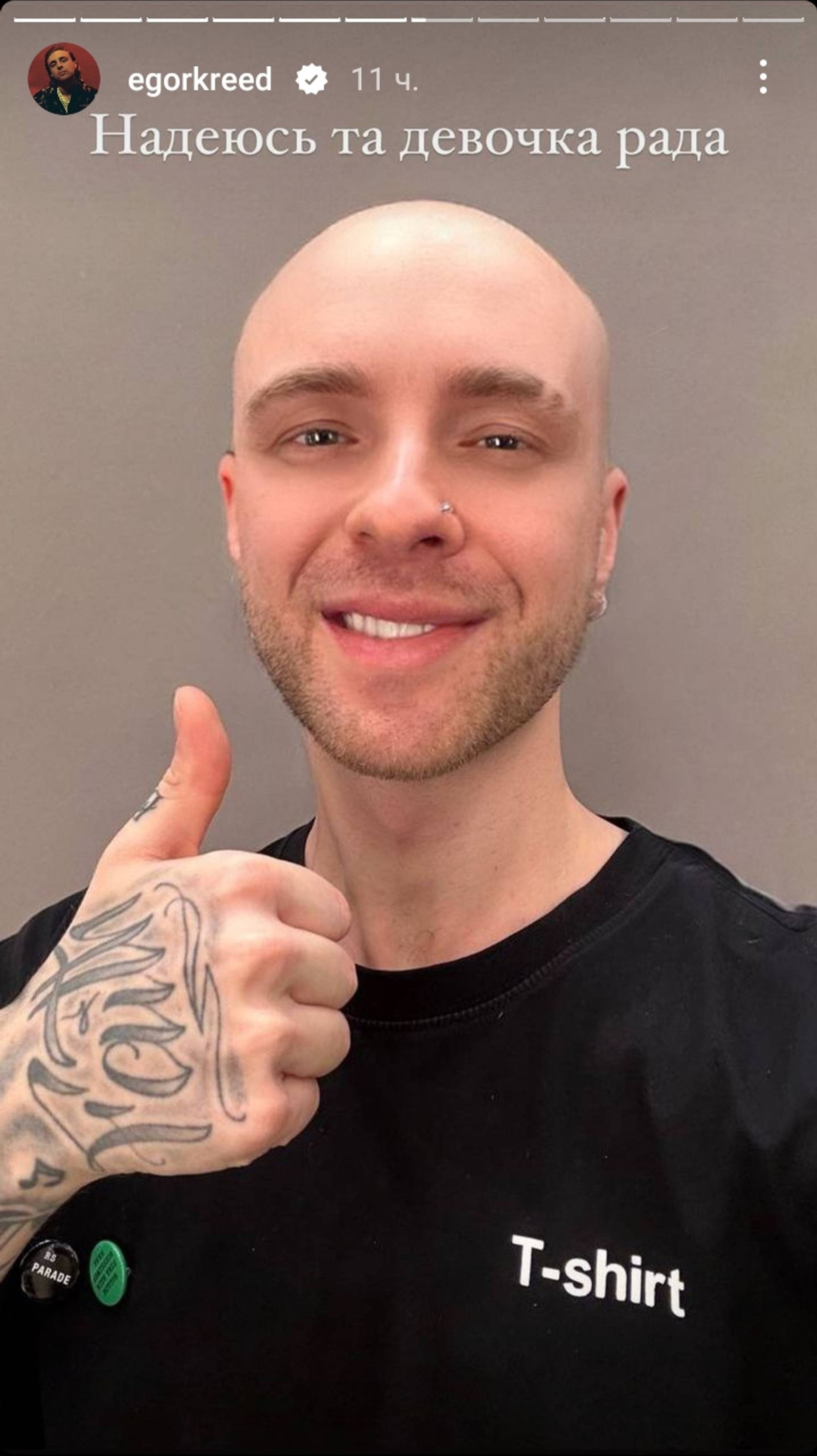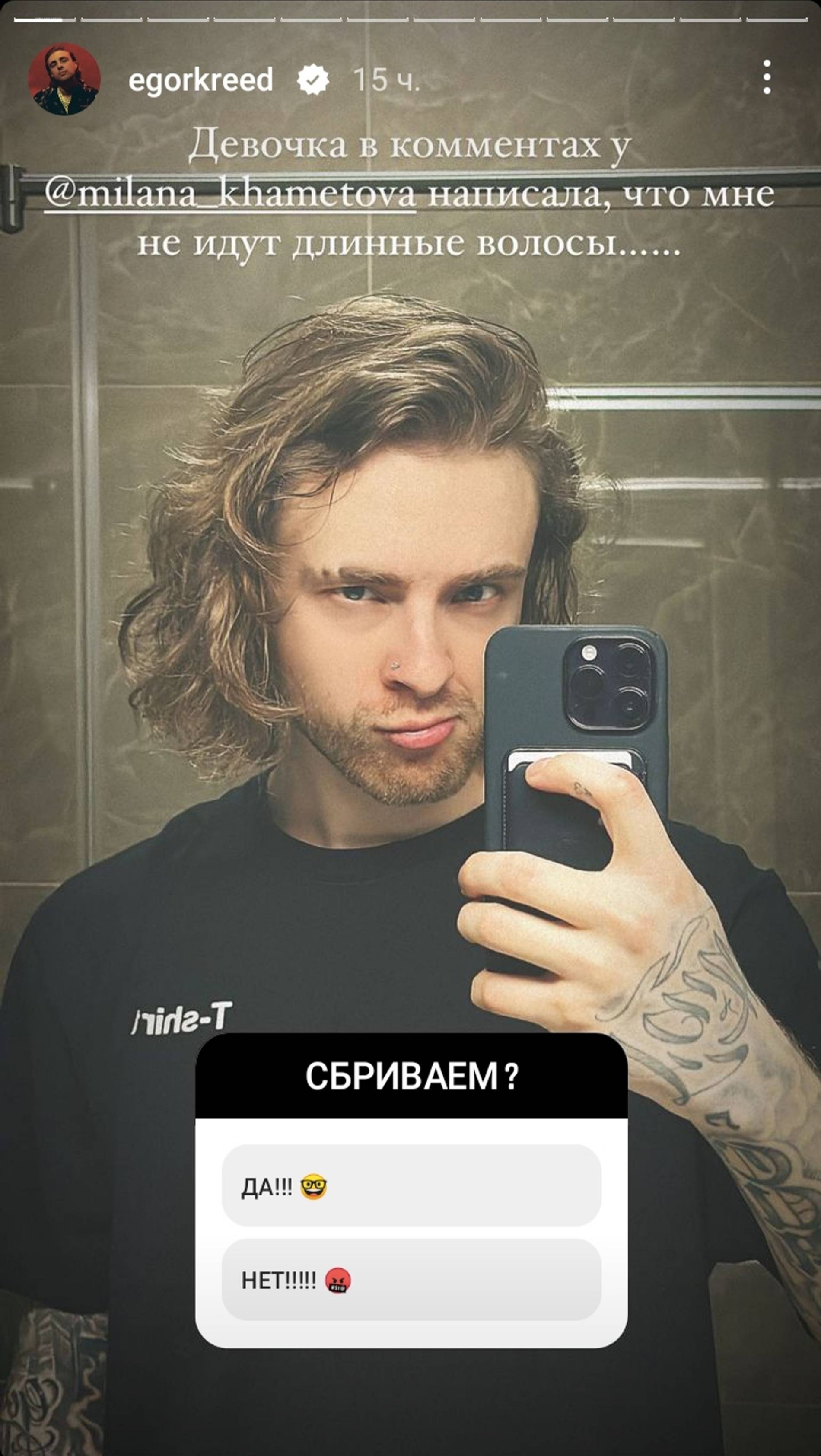 Поводом для радикальной смены имиджа стал случайный комментарий. По словам Крида, некая «девочка» написала, что ему не идут длинные волосы. Похоже, мнение фанатов для певца — закон, более того, у него в Инстаграме (запрещен в РФ) царит настоящая демократия, поэтому он поспешил устроить честные выборы у себя в сторис: быть волосам или не быть? Подписчики приняли это серьезное решение, и Крид пошел на радикальный шаг: побрился налысо. Все как положено: фото с парикмахером, угрожающим машинкой, а затем и пара кадров с голой макушкой. Но в правдивость нового образа мало кто поверил. Не помогли и другие сторис певца, где его волосы волшебным образом уже вернулись. Жаль, а нам успело понравиться.