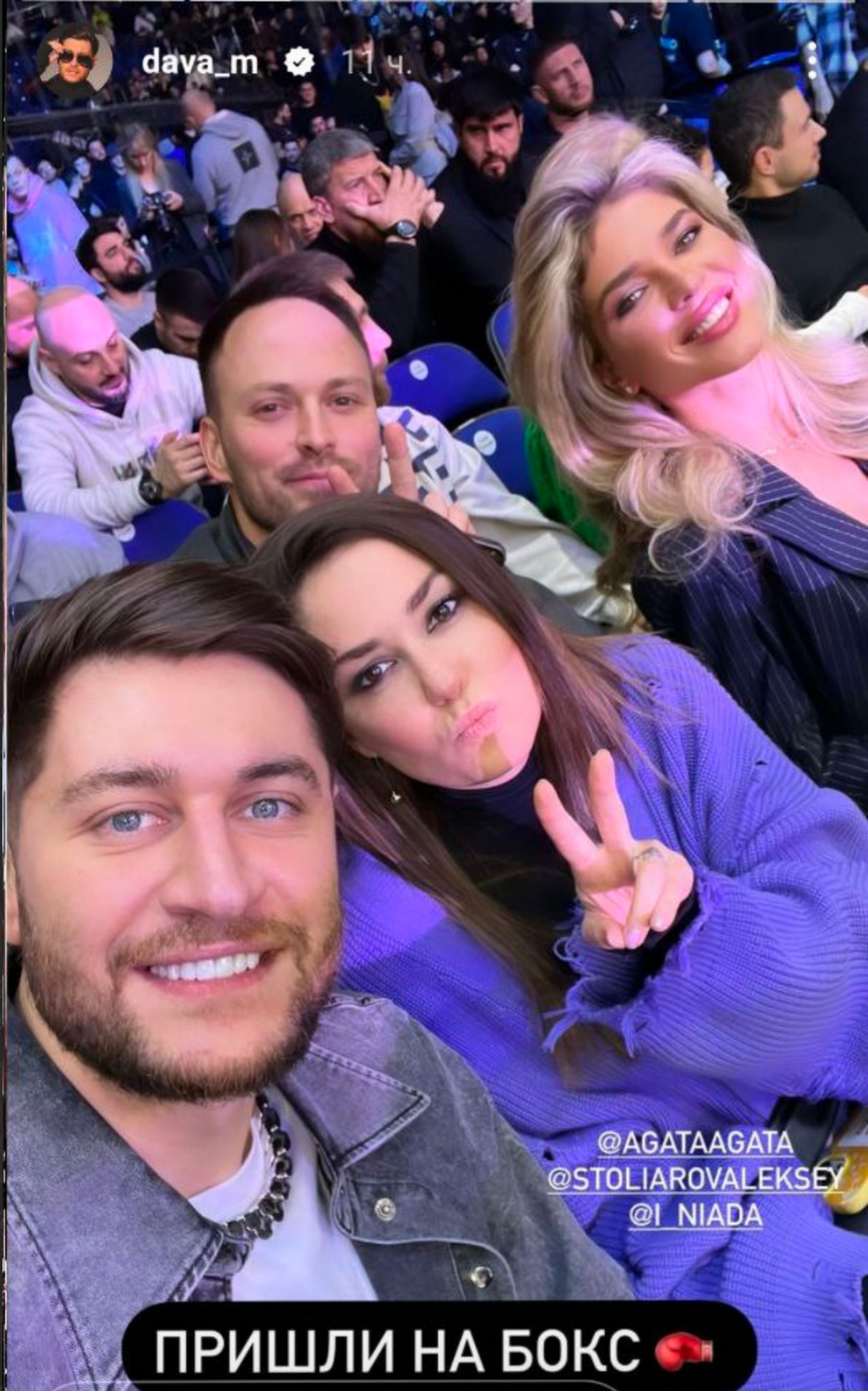Актриса Агата Муцениеце и блогер Дава впервые вместе вышли в свет –– и это не по случаю совместного проекта. Пара просто пришла на соревнования по боксу в свободное от работы время (надо же, хоть у кого-то из звезд оно сейчас есть). «Пришли на бокс», — подписал в Инстаграме* Давид Манукян фото, на котором они с экс-супругой Павла Прилучного уютно устроились рядышком на трибунах болельщиков.