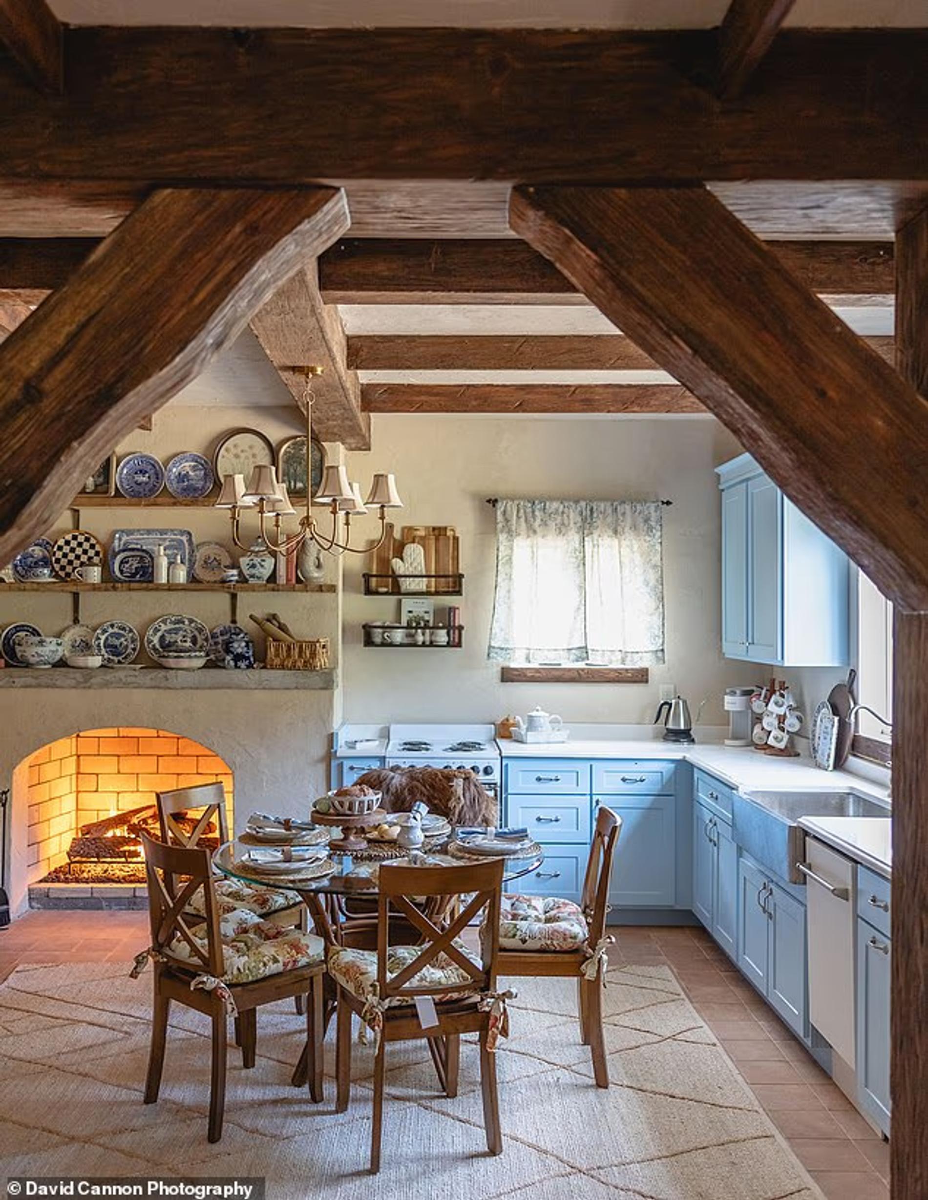 Чтобы добиться аутентичности, дизайнер использовала натуральный камень, ручные балки, фактурную штукатурку и даже легкий «беспорядок», будто Айрис только что вышла за кружкой какао.