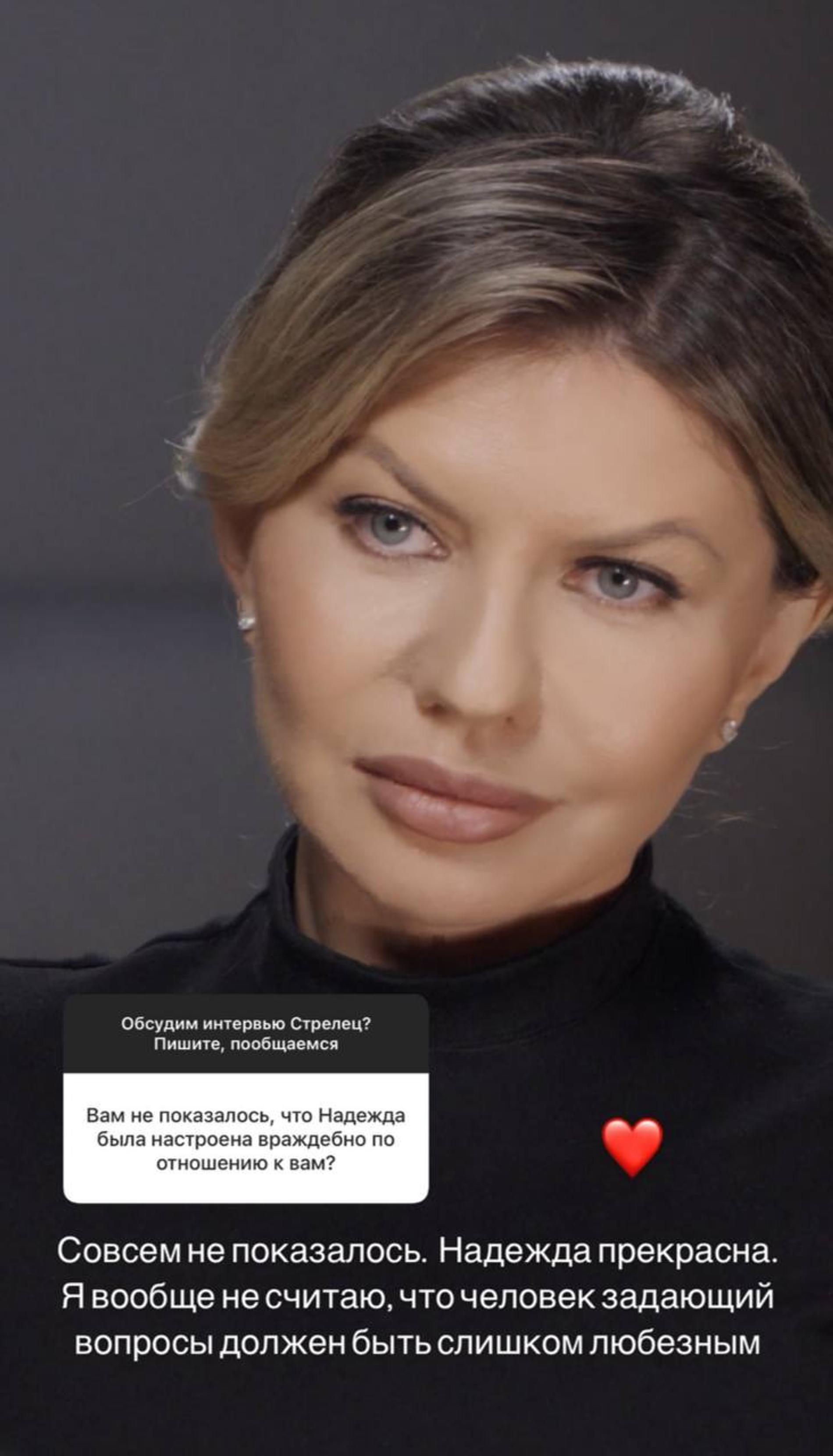 «Совсем не показалось [что Стрелец была настроена враждебно]. Надежда прекрасна. Я вообще не считаю, что человек, задающий вопросы, должен быть слишком любезным», — отреагировал на вопрос фолловера в запрещенной соцсети Шепелев.