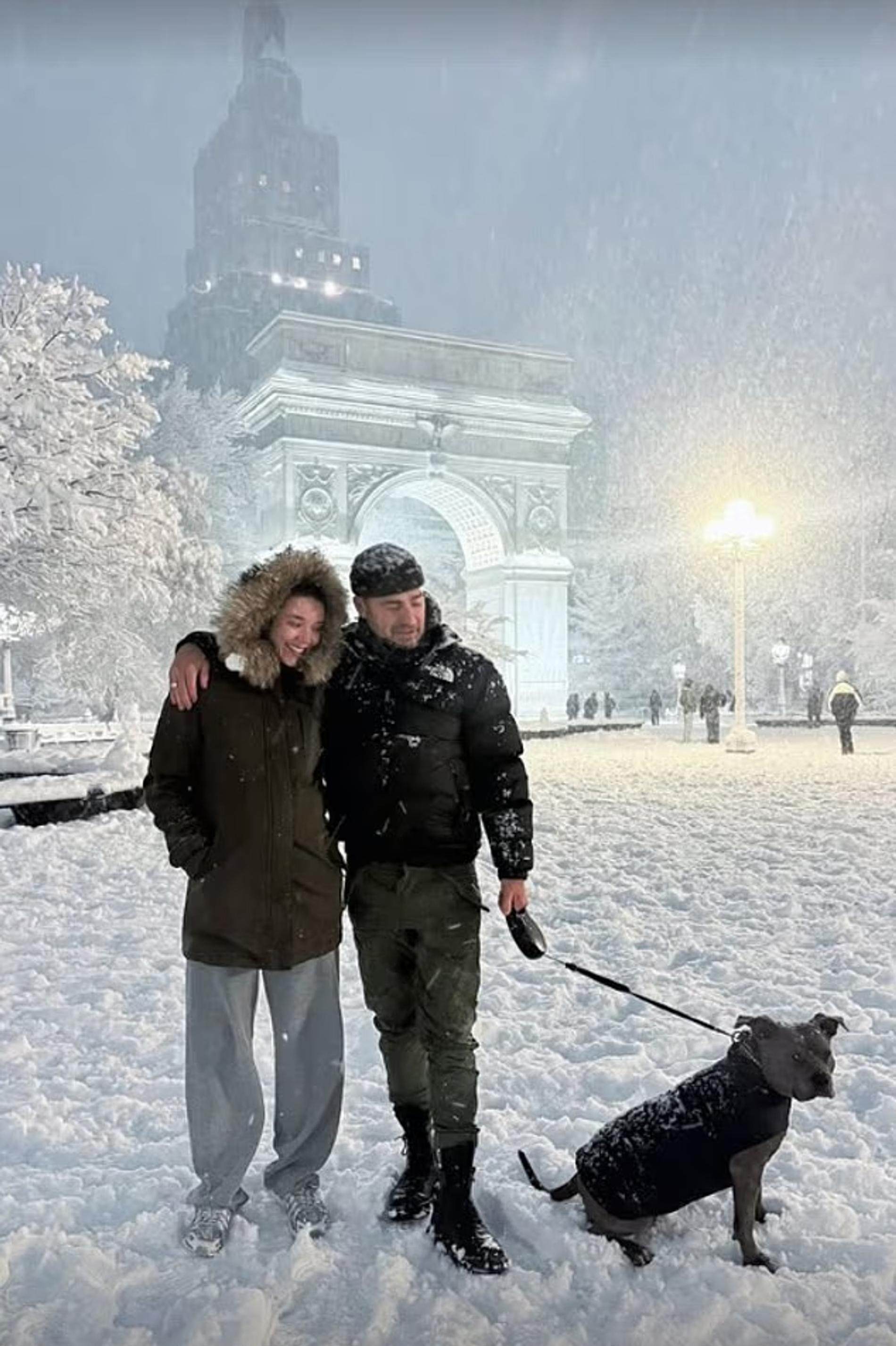 Джастин Теру вывел беременную жену в парк во время снежной бури в Нью-Йорке