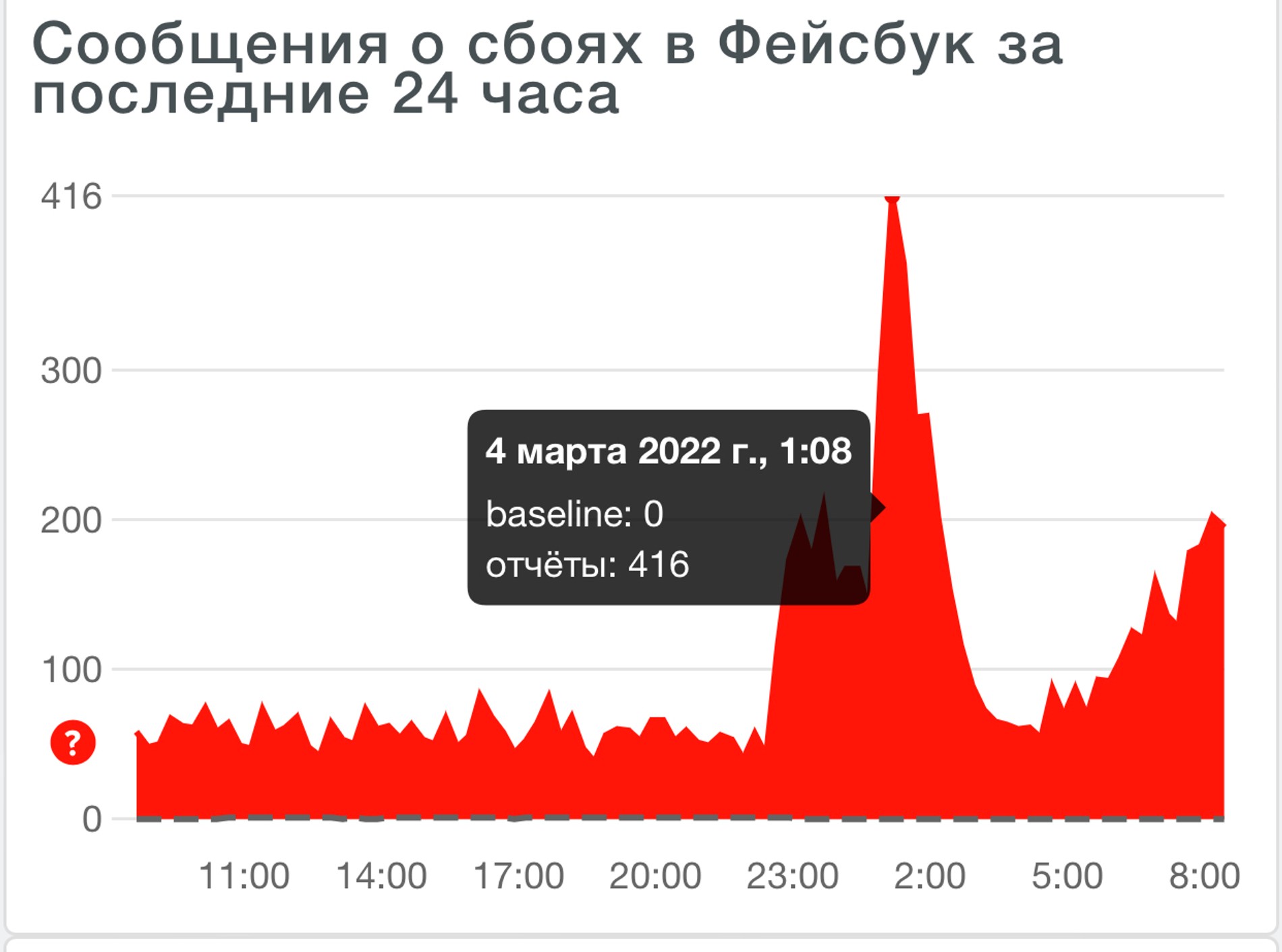 Больше всего проблем возникло у россиян с доступом к веб-сайту Facebook. Кроме того, часть пользователей не смогла даже зайти в свои аккаунты: не удавалось пройти авторизацию.