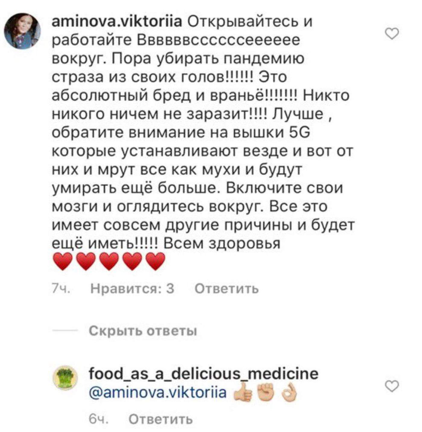 Идея с чипированием всех жителей планеты и сокращением населения на третий месяц карантина дошла и до светской Москвы. Люди, которые, как нам казалось, вступали в элитные круги общения столичной бизнес-тусовки, теперь постят свои заявления о том, что можно без страха выходить на работу, а также называют других «овощами» из-за их невежества.