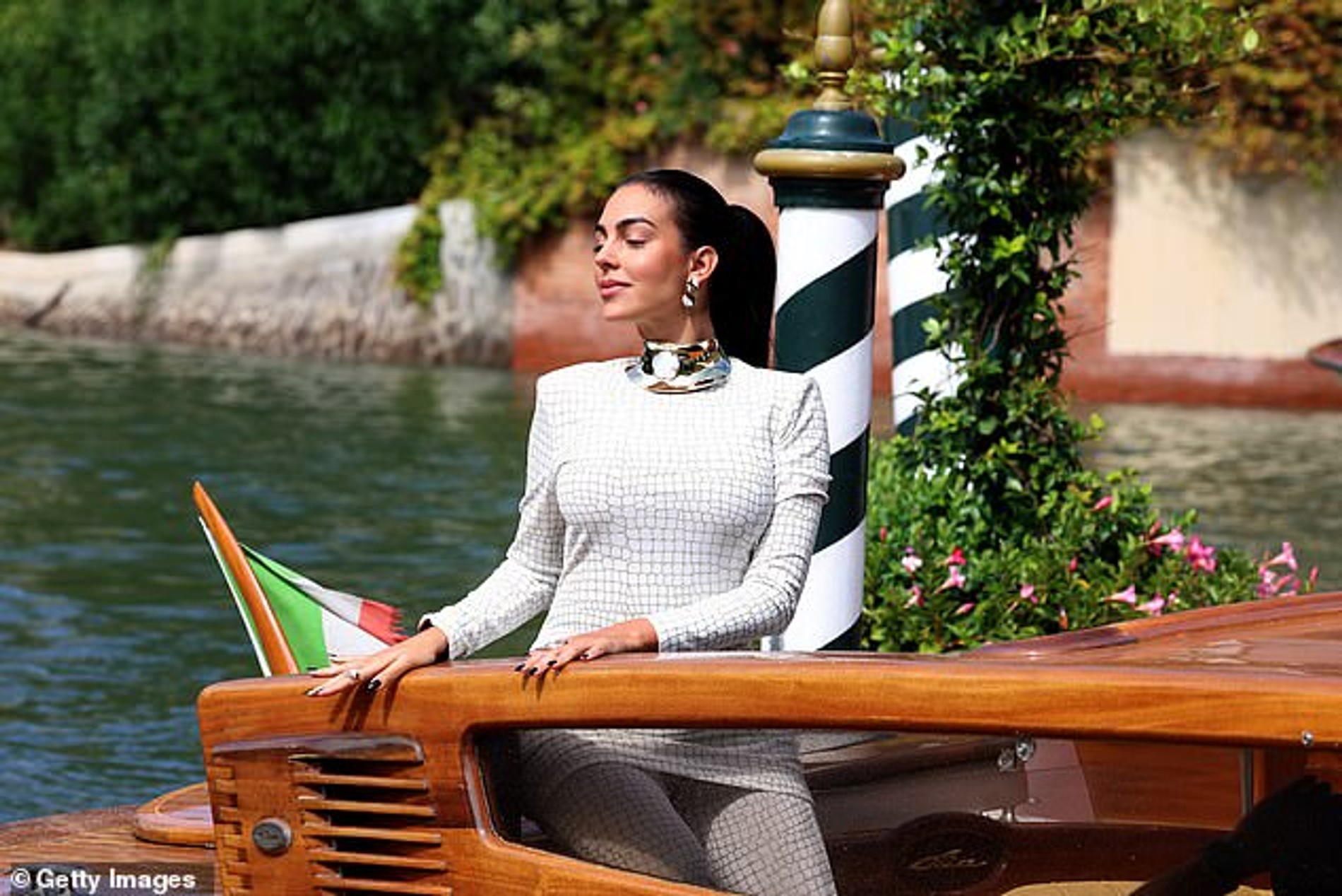 Последние несколько месяцев стали тяжелыми для семьи футболиста: в апреле пара потеряла одного из новорожденных близнецов. Но уже через месяц Джорджина блистала на Каннском фестивале, вызывая восторги поклонников и критику хейтеров. И вот теперь на очереди Венеция: на премьере фильма «Тар» модель появилась в откровенном платье бренда Genny, который представляет с прошлого месяца. Черный атласный наряд с открытой спиной и нескромным разрезом до середины бедра Родригес дополнила широким золотым чокером с черным лаковым цветком, массивными серьгами и браслетом, а также тонкими цепочками на лодыжках, которые мы привыкли видеть скорее на пляже, чем на красной дорожке. Но если вам кажется, что этот образ выглядит неоднозначно, то вы просто еще не видели предыдущий: из водного такси Джорджина вышла в крайне странном костюме. Удлиненный и абсолютно закрытый трикотажный верх, утяжеляющий фигуру, плюс брюки с разрезами — кажется, словосочетание «полный провал» было придумано специально для этого лука.