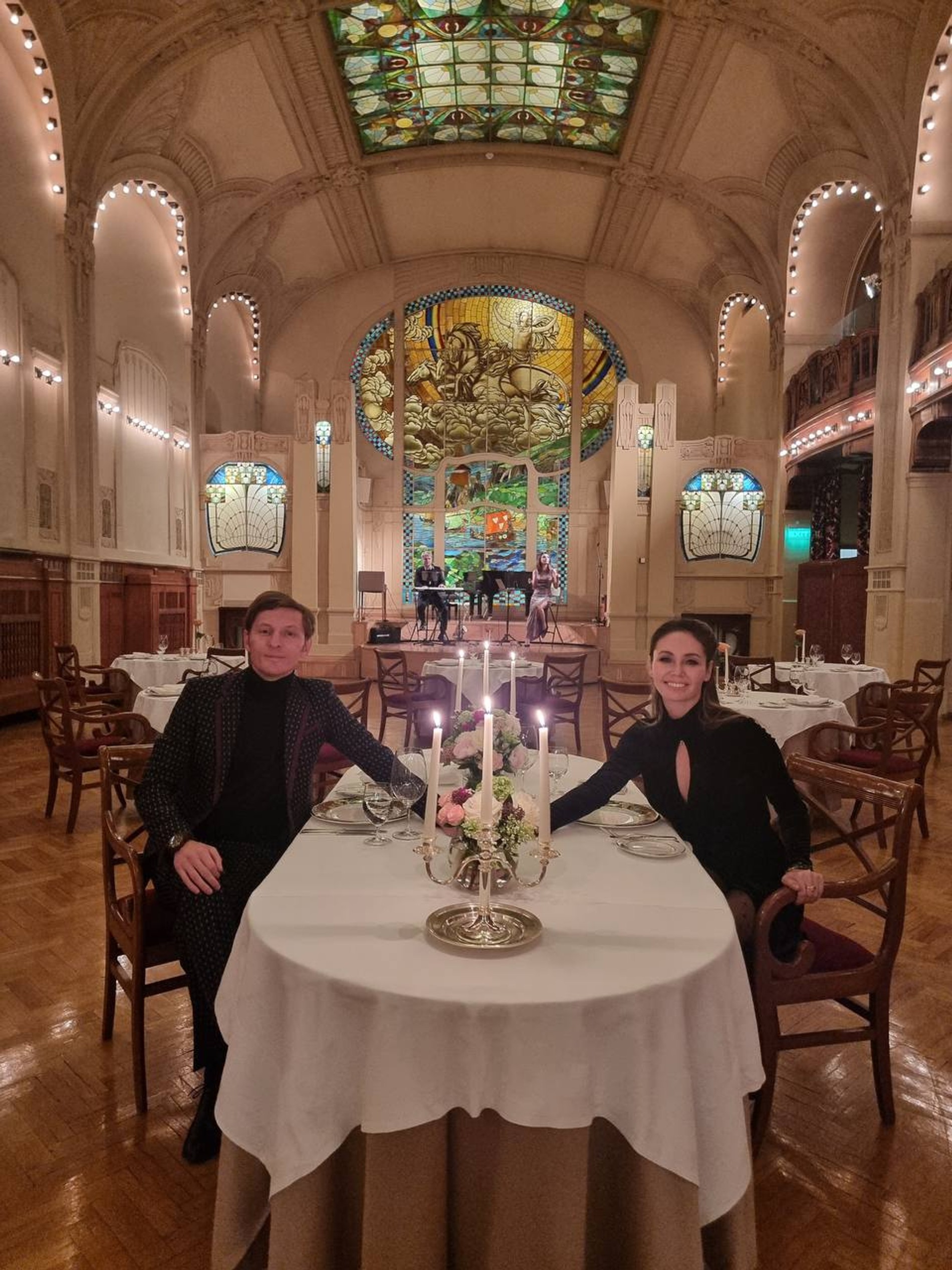 Годовщину звезды отметили в пятизвездочном отеле в Санкт-Петербурге — здание построено в конце XVIII века! Локацию комик выбрал неслучайно — здесь останавливались кумиры Ляйсан и Паши: Майя Плисецкая и Родион Щедрин, Владимир Высоцкий и Марина Влади, Петр Чайковский и его жена Антонина. В огромном зале никого, только влюбленные и музыканты — супругам удалось вдоволь насладиться обществом друг друга. Дети — Роберт и София, — видимо, ждут родителей дома.