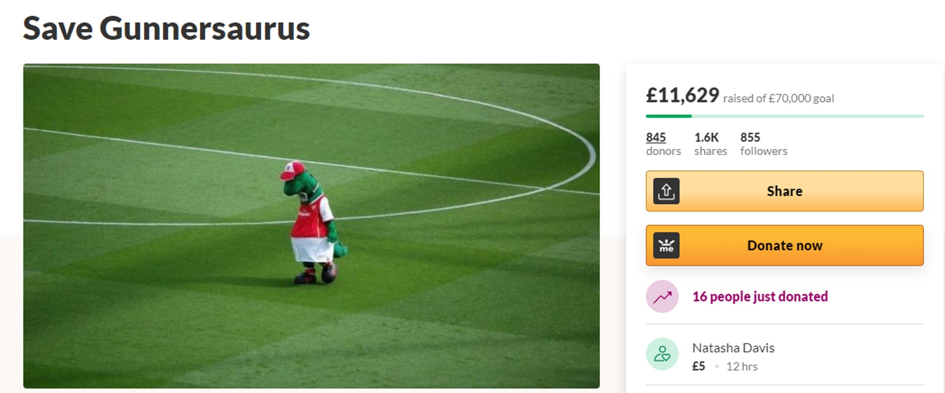 Эта печальная новость стала трагедией не только для парня в костюме, но и для миллионов любителей футбола по всему миру: фанаты соперников сочувствовали тем, кто болел за «Арсенал», а команды со всего мира стали наперебой звать к себе веселого динозаврика. В соцсетях развернулась настоящая борьба за справедливость: пользователи запускали хештеги и отстаивали права Джерри, готовые сами скинуться на зарплату Ганнерзавру. Поклонники «Арсенала» даже запустили сбор средств на одной из популярных платформ, собрав за несколько дней более 11 тысяч фунтов стерлингов (более миллиона рублей).