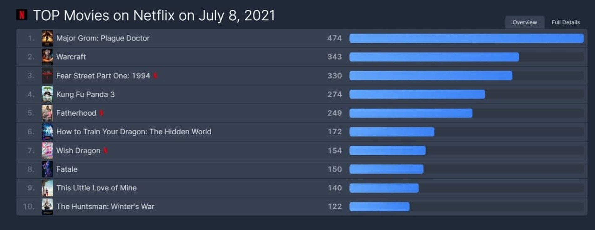 Отечественный супергеройский экшн «Майор Гром» наконец может похвастаться международным успехом: сегодня фильм стартовал в мировом Netflix, причем стартовал триумфально: по состоянию на 8 июля «Майор Гром: Чумной Доктор» занимает первое место по популярности во всем мире. В 64 странах блокбастер попал в топ-10, а в Бельгии, Бразилии, Бельгии, на Кипре, в Чехии, Доминиканской Республике, Венгрии, Италии, Кувейте, Люксембурге, Омане, Катаре, Словакии, Испании и Швейцарии стартовал сразу с первой строчки.