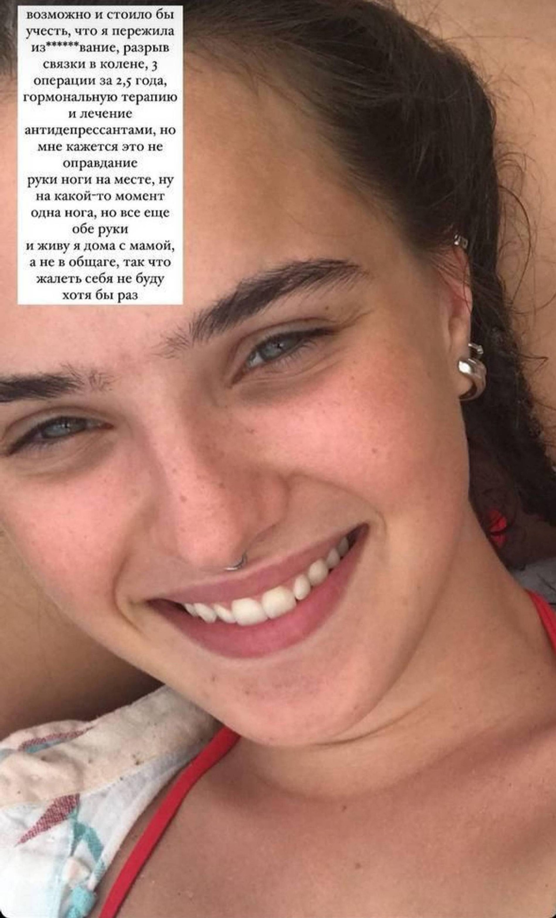 Ольга Бухарова, по ее собственным словам, использует социальные сети как дневник. И вчера подписчики стали свидетелями очень откровенных признаний 22-летней девушки. Ольга уже не раз писала о том, что живет с расстройствами пищевого поведения — булимией и анорексией. А в новой серии сторис она показала фотографии своего меняющегося тела и рассказала, что одной из причин резких скачков в весе стал буллинг в Интернете с раннего возраста, а другой — абьюзивные отношения с бойфрендом. Несмотря на то что она столкнулась с серьезными проблемами, девушка себя не жалеет: «Возможно, и стоило бы учесть, что я пережила изнасилование, разрыв связки в колене, три операции за 2,5 года, гормональную терапию и лечение антидепрессантами, но, мне кажется, это не оправдание. Руки-ноги на месте, ну на какой-то момент одна нога, но все еще обе руки. И живу я дома с мамой, а не в общаге, так что жалеть себя не буду хотя бы раз». Ну а мы в свою очередь надеемся, что черная полоса в жизни Ольги закончится и она сможет наконец-то почувствовать себя комфортно в собственном теле.