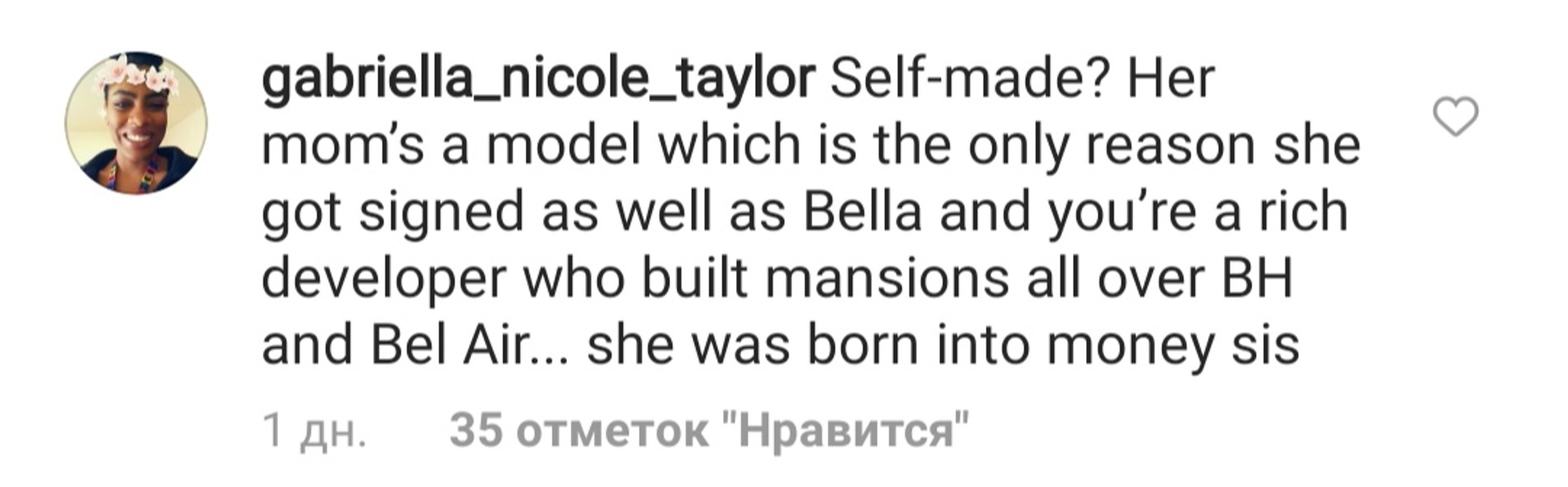 Именно этот факт о Джиджи вызвал недоумение у поклонников, которые не только знают, что Мохаммед — успешный бизнесмен, а мать девушки — известная модель Иоланда Хадид, но и помнят реалити-шоу с ее участием. Иоланда с дочерьми снималась в «Реальных домохозяйках Беверли-Хиллз», откуда можно было больше узнать об их роскошном образе жизни.