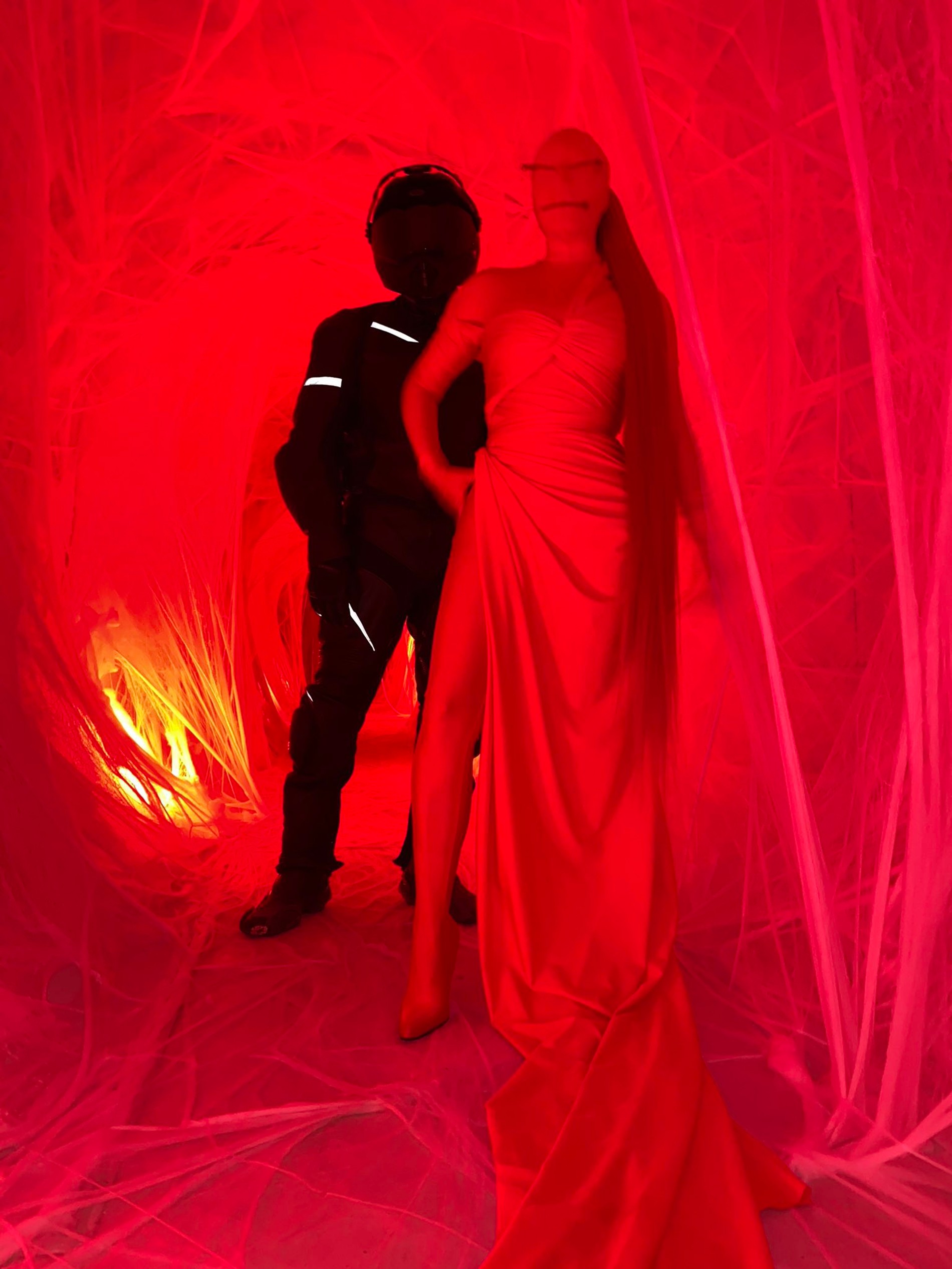 Канье Уэст и Ким Кардашьян в образе от Balenciaga