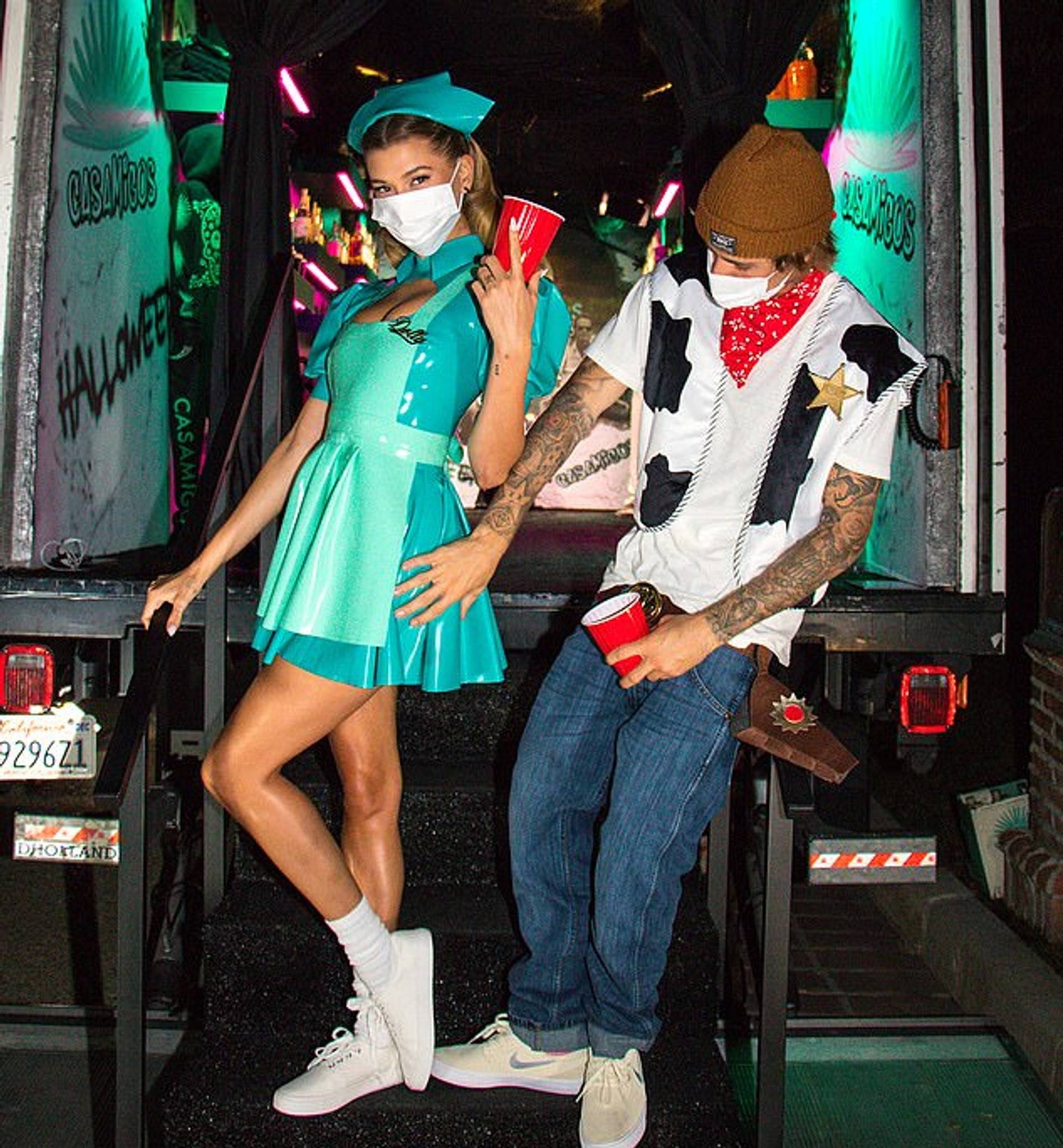 Хейли и Джастин Бибер в образе медсестры и ковбоя