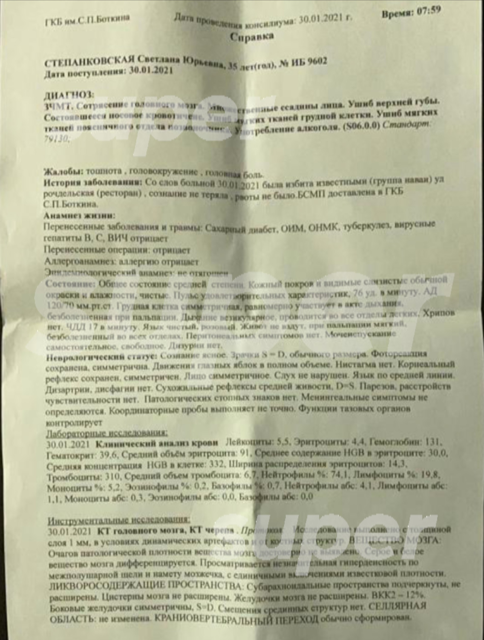 По словам пострадавшей Светланы, сейчас у неё диагностировали сотрясение мозга и врачи настаивают на госпитализации.