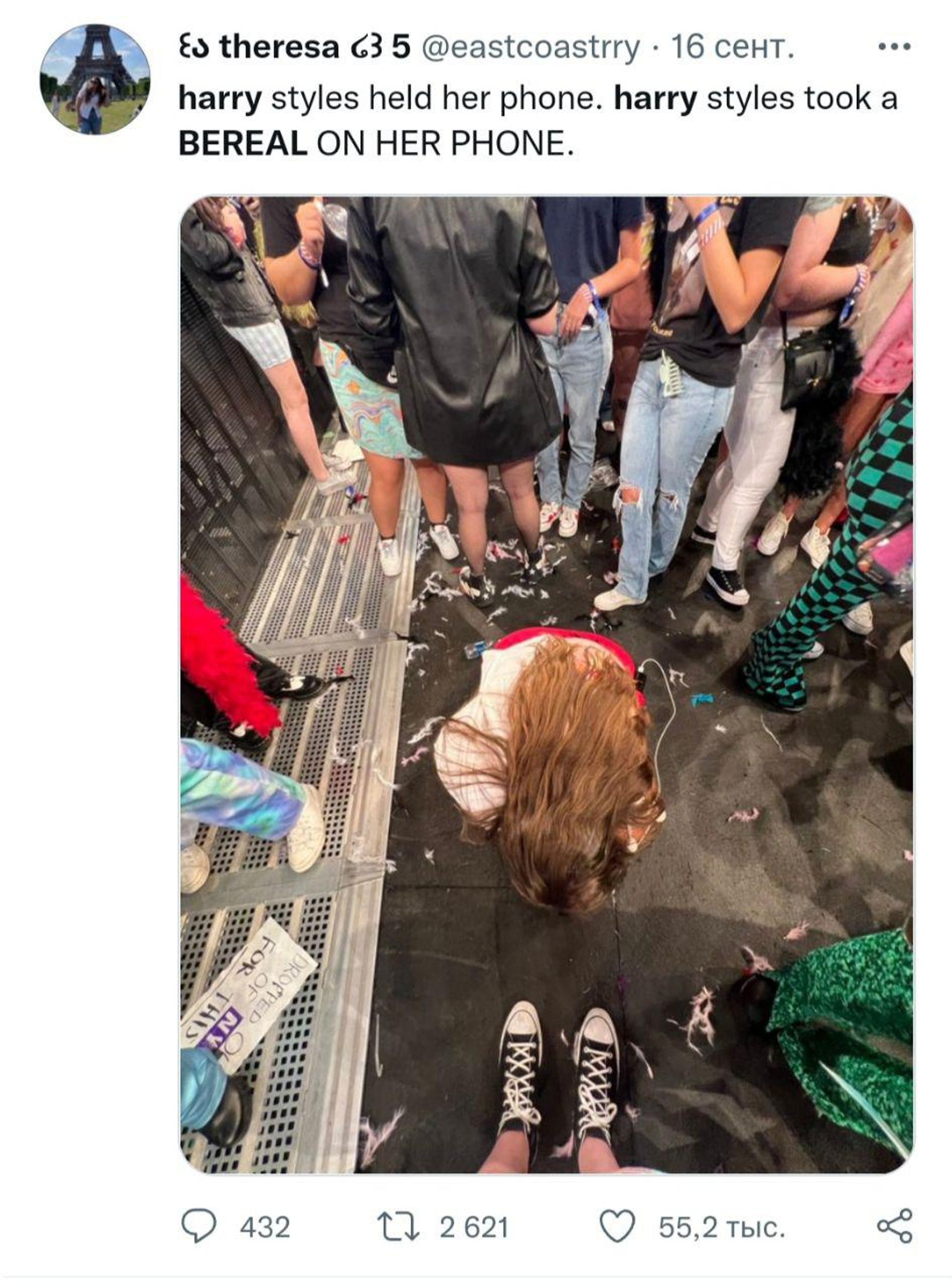 У Гарри Стайлса начало осени выдалось по-настоящему горячее: после премьеры картины «Не волнуйся, дорогая» на Венецианском кинофестивале все взахлеб обсуждают его странное поведение. Правда ли он плюнул на Криса Пайна? И неужели действительно вдрызг разругался со своей партнершей по фильму Флоренс Пью? Фанаты уже начали переживать: мол, их кумира подменили и вместо милого любвеобильного Гарри на мероприятиях и концертах теперь будет появляться капризная дива. Естественно, певец поспешил развеять их сомнения и на шоу в Нью-Йорке 15 сентября показал себя с лучшей стороны. А именно взял телефон у одной из поклонниц, стоящей в фанзоне, и сделал селфи в популярном приложении BeReal. Для девушки это стало настоящим шоком, а фото быстро разлетелось по всем соцсетям в сопровождении восторженных комментариев. Ну что, верим парню или он только притворяется белым и пушистым? Смотрим и оцениваем по системе Станиславского!
