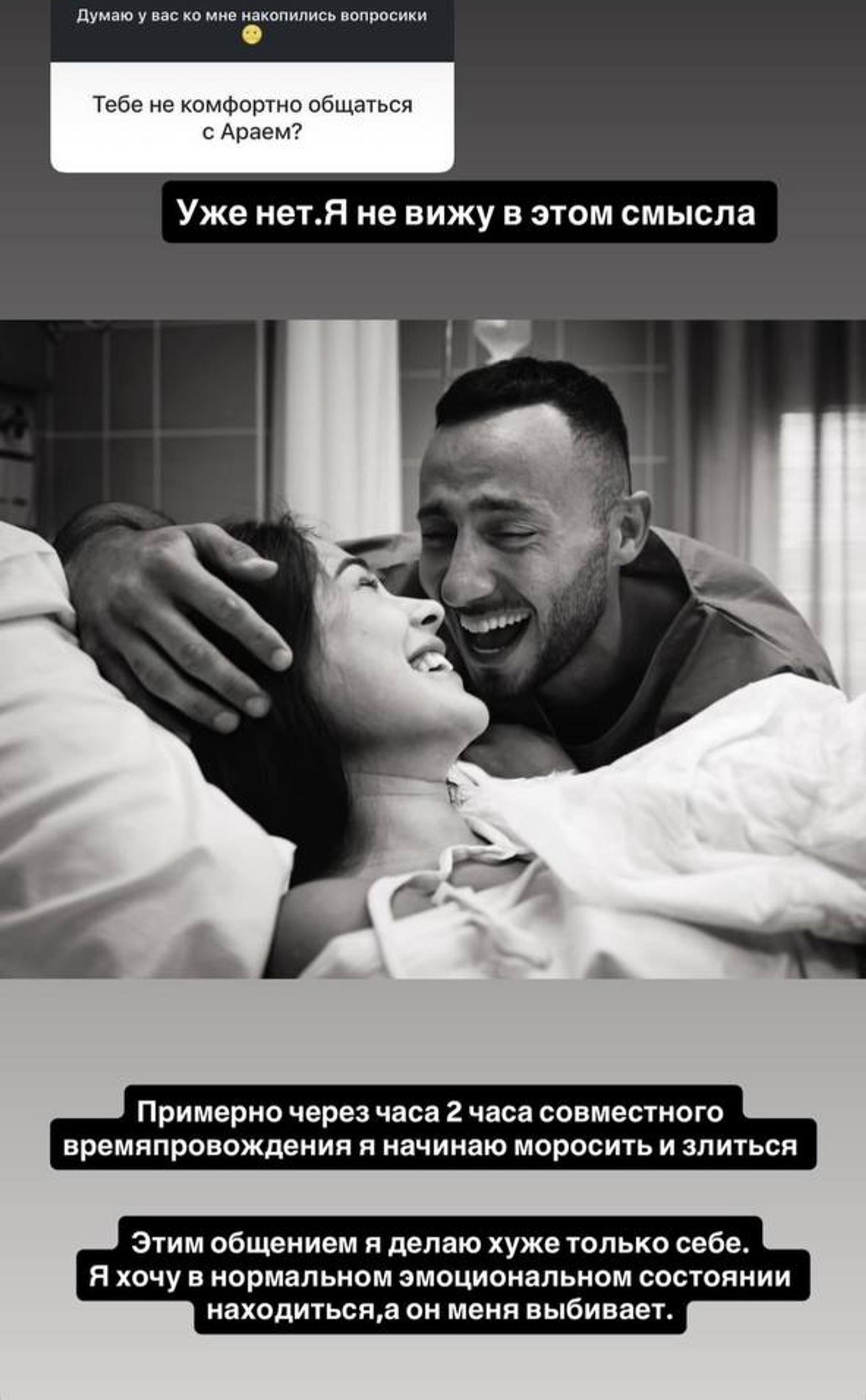 Всё ещё не разведённые после скандала со слитыми переписками и изменами Ирина Пинчук и Арай Чобанян продолжают воспитывать двоих детей. По собственному признанию экс-участницы «Дома-2», она с радостью прекратила бы общение с бывшим возлюбленным, но терпит всё ради сыновей. В личном блоге, отвечая на вопросы подписчиков, Ира раскрыла, что в компании Чобаняна ей становится всё более некомфортно, и пары часов хватает, чтобы начать выходить из себя.