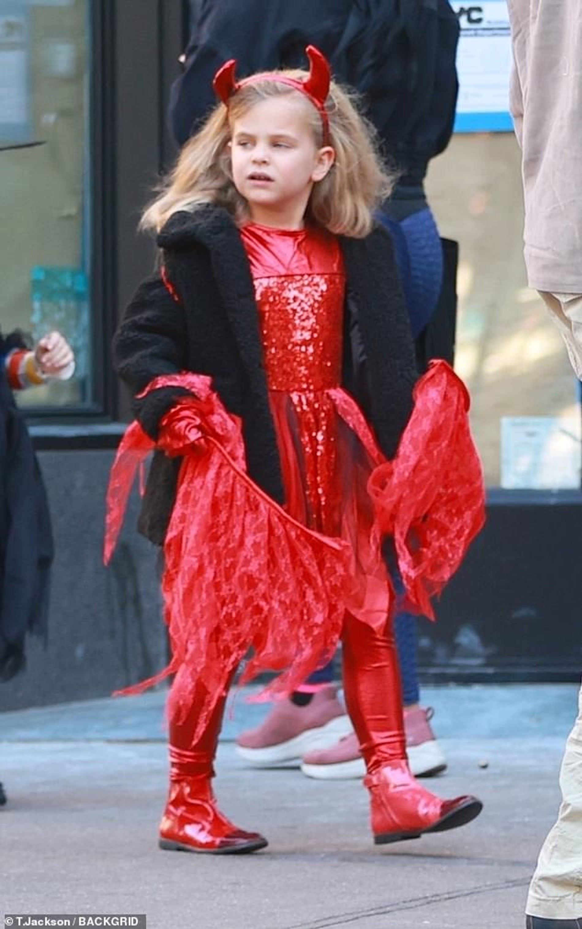 Но самый яркий наряд, который заставлял прохожих буквально выворачивать шеи, был у Леи. Звездное дитя уже вовсю празднует Хеллоуин и разгуливает в костюме девочки-дьявола ярко-красного цвета: кружевном платье, латексных лосинах, лакированных ботинках и, конечно, с ободком в виде рожек на голове. Ну и кто тут главная звезда?