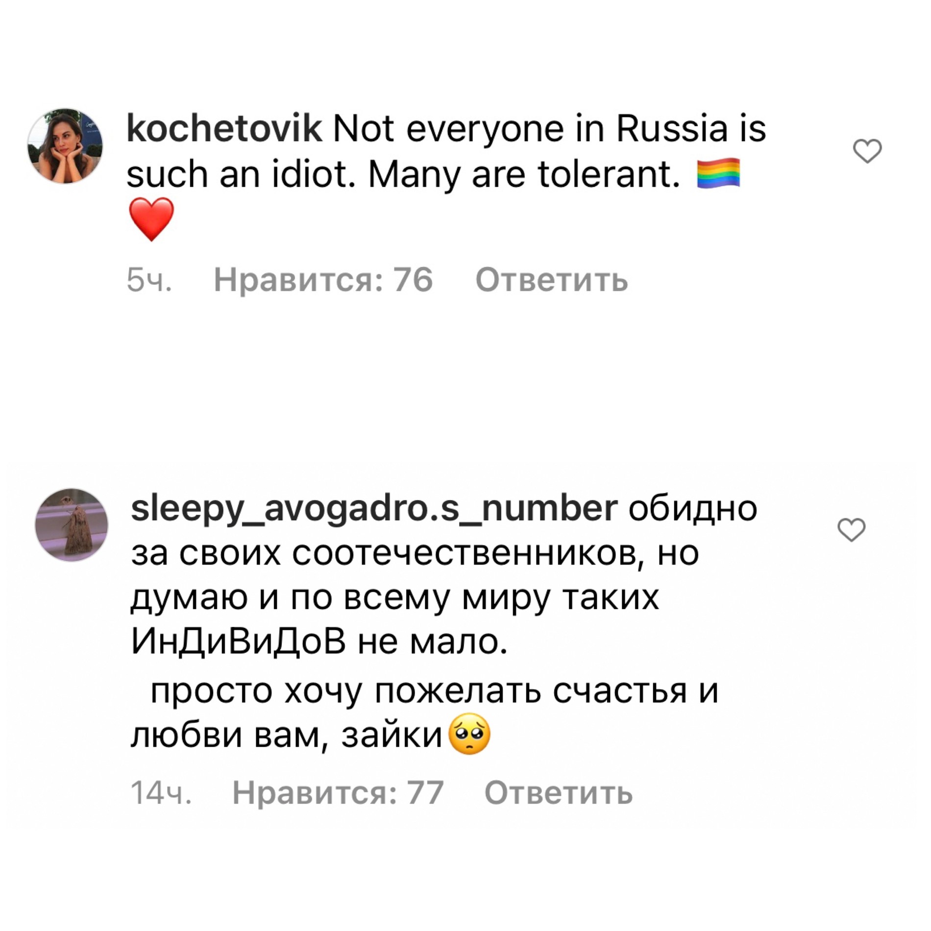 Не все российские подписчики были шокированы поцелуем дизайнера с женихом, некоторые даже упрекали соотечественников в нетолерантности.