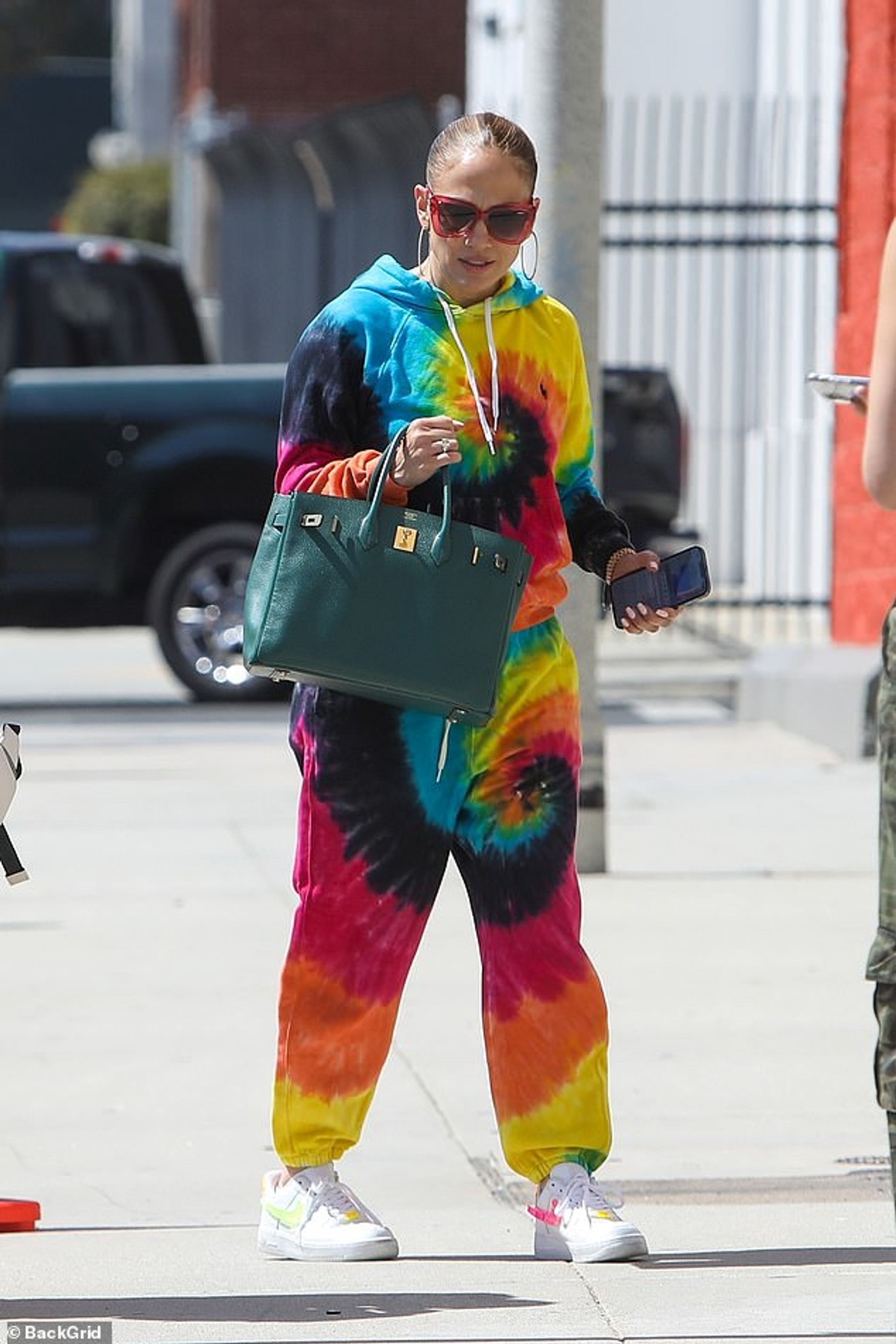 Джей Ло не перестает удивлять. Вчера папарацци сфотографировали 53-летнюю певицу в Нью-Йорке, когда она выходила из своей танцевальной студии. Неожиданным для нас стал выбор наряда. Считаем, что спортивный костюм с принтом tie-dye совсем не в стиле Джей Ло, ничего подобного мы на ней не припомним. Одежду такой расцветки еще на заре своего движения облюбовали хиппи, и теперь она прочно с ними ассоциируется. В общем, где Дженнифер с ее роскошным обтягивающими платьями и где хиппи? Не складывается у нас пазл. Но все это, конечно, обывательские разговорчики и мелочи жизни. Просто счастлива Дженнифер Лопес-Аффлек и точка, и весь этот tie-dye — новые краски, которыми заиграла ее жизнь. Вот и говорите потом, что цвет одежды не зависит от настроения.
