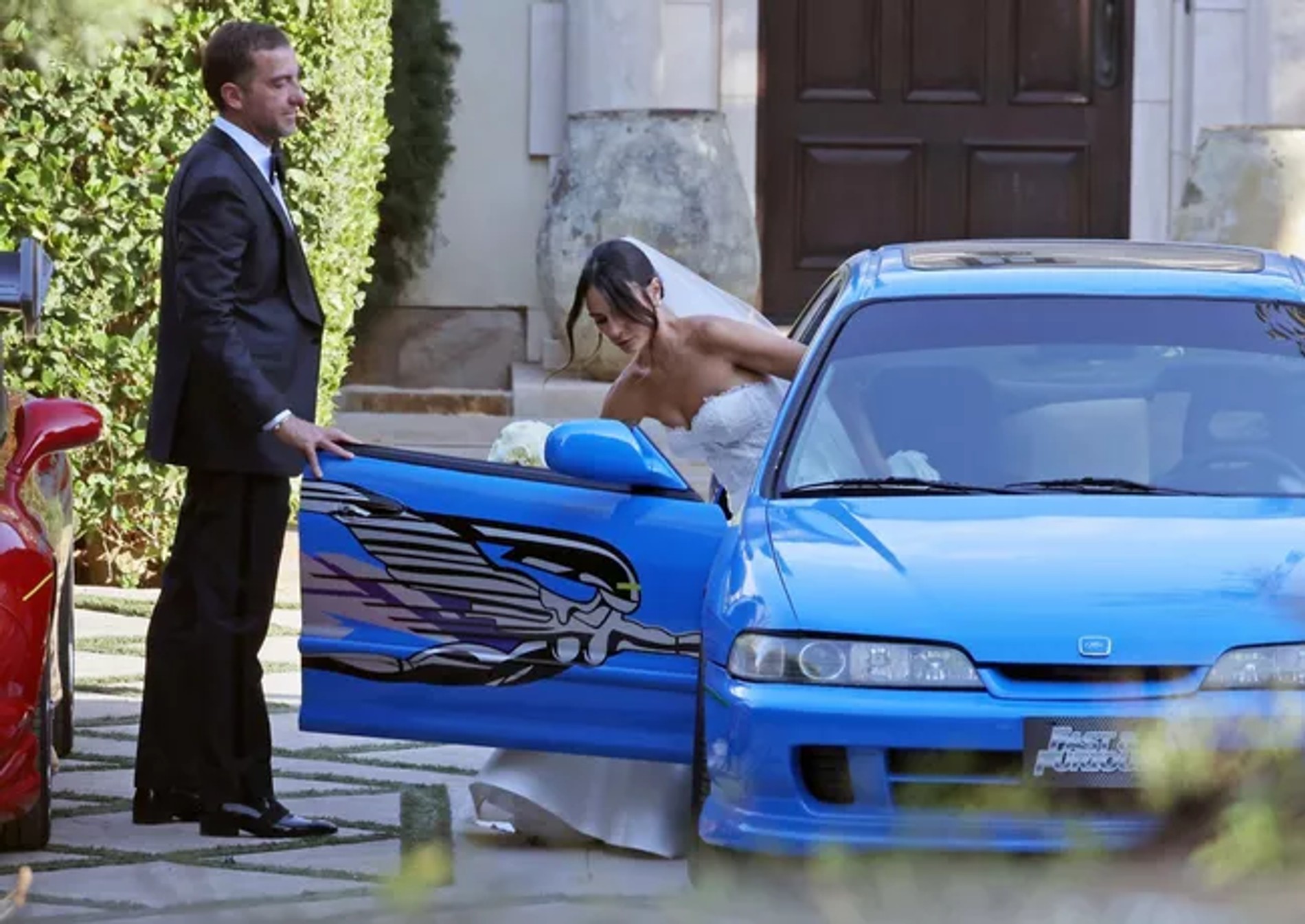 Интересный факт: на свадьбе было сразу несколько машин со съемок фильма «Форсаж» аж из 2001 года. А еще в качестве гостей были приглашены, конечно же, коллеги Джорданы по франшизе: Вин Дизель, Лудакрис и дочь Пола Уокера Медоу.