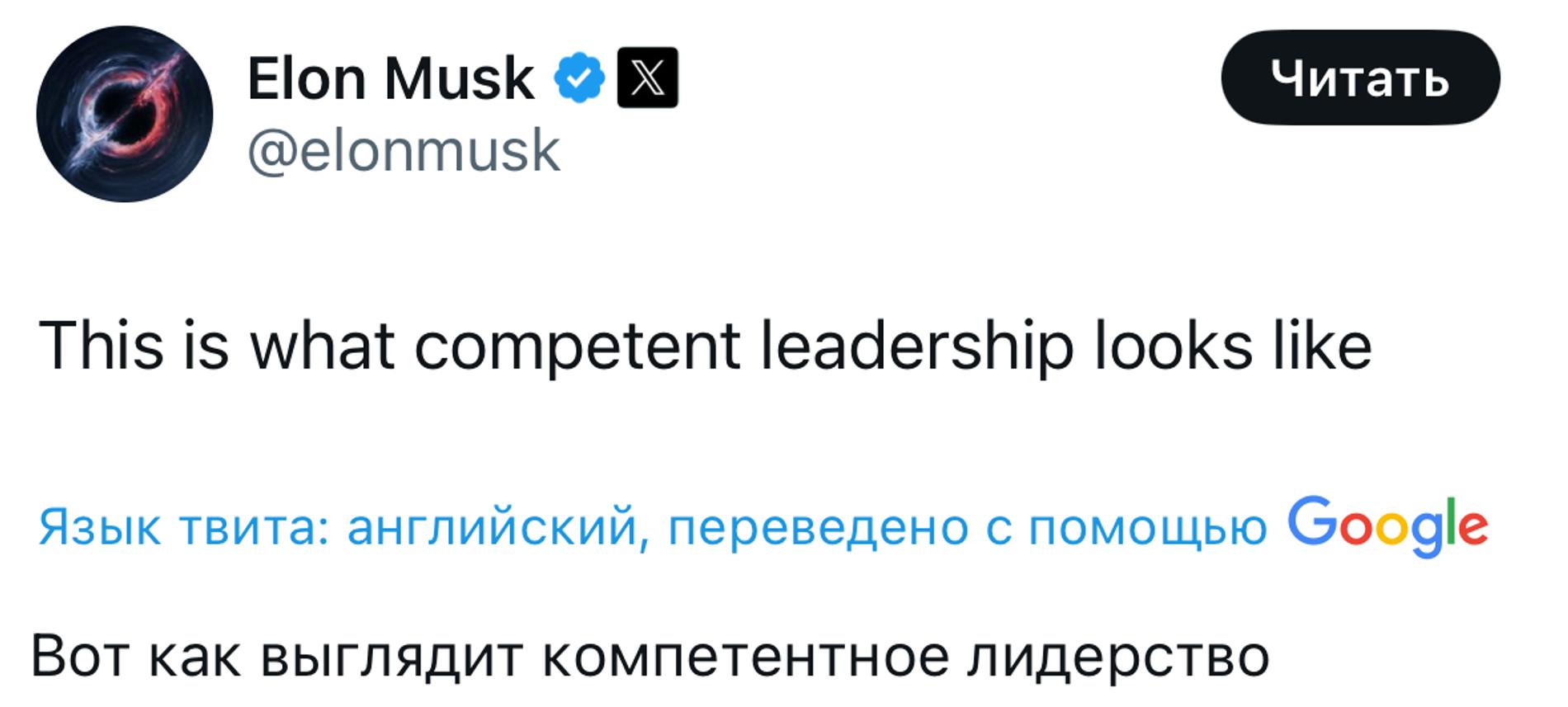 Скриншот из акаунта Илона Маска в соцсети Х, где он восхищается профессиональными качествами представителей МИД РФ.