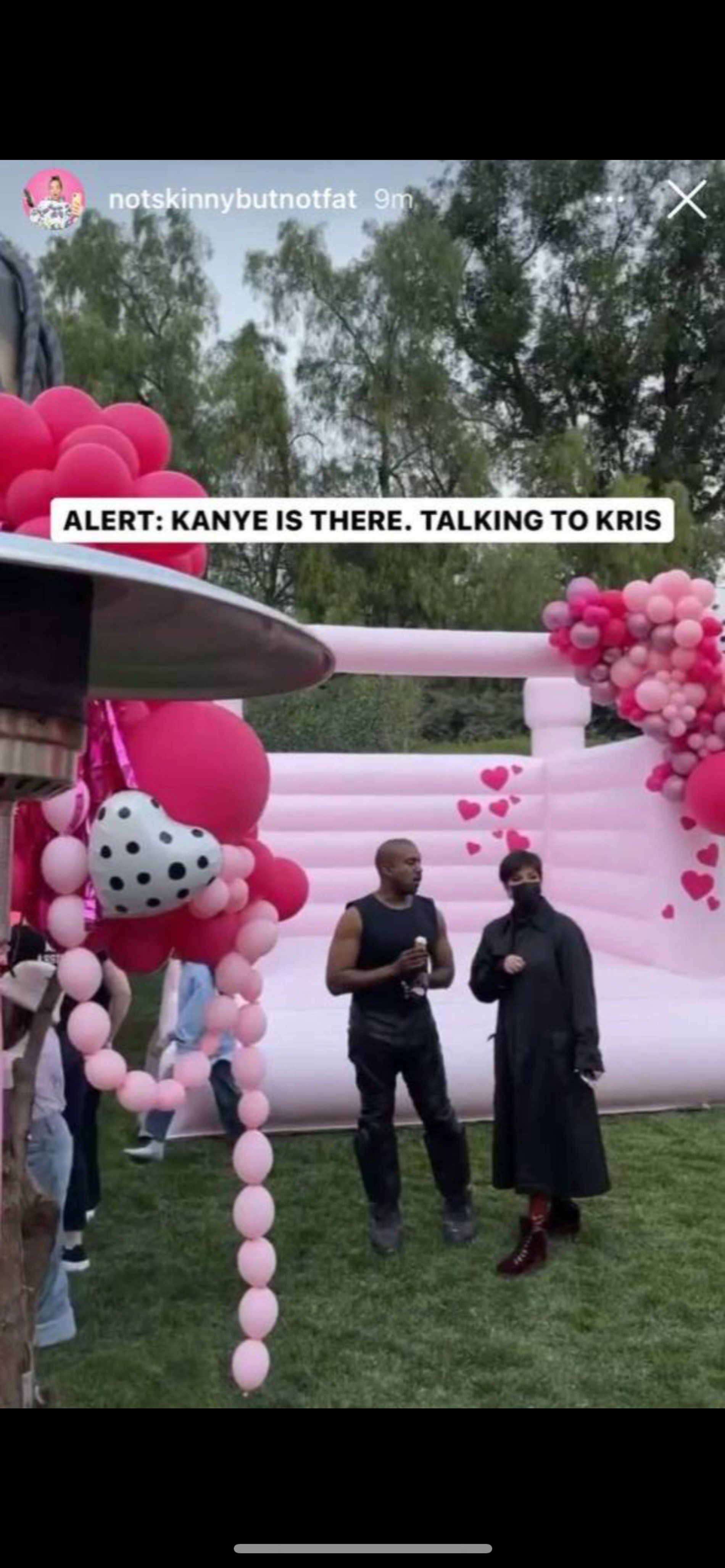 Спустя время Канье все же нашел адрес вечеринки и даже попал на нее. В Сети появились кадры, как Йе непринужденно поедает мороженое на фоне розового батута с Крис Дженнер, своей экс-тещей.