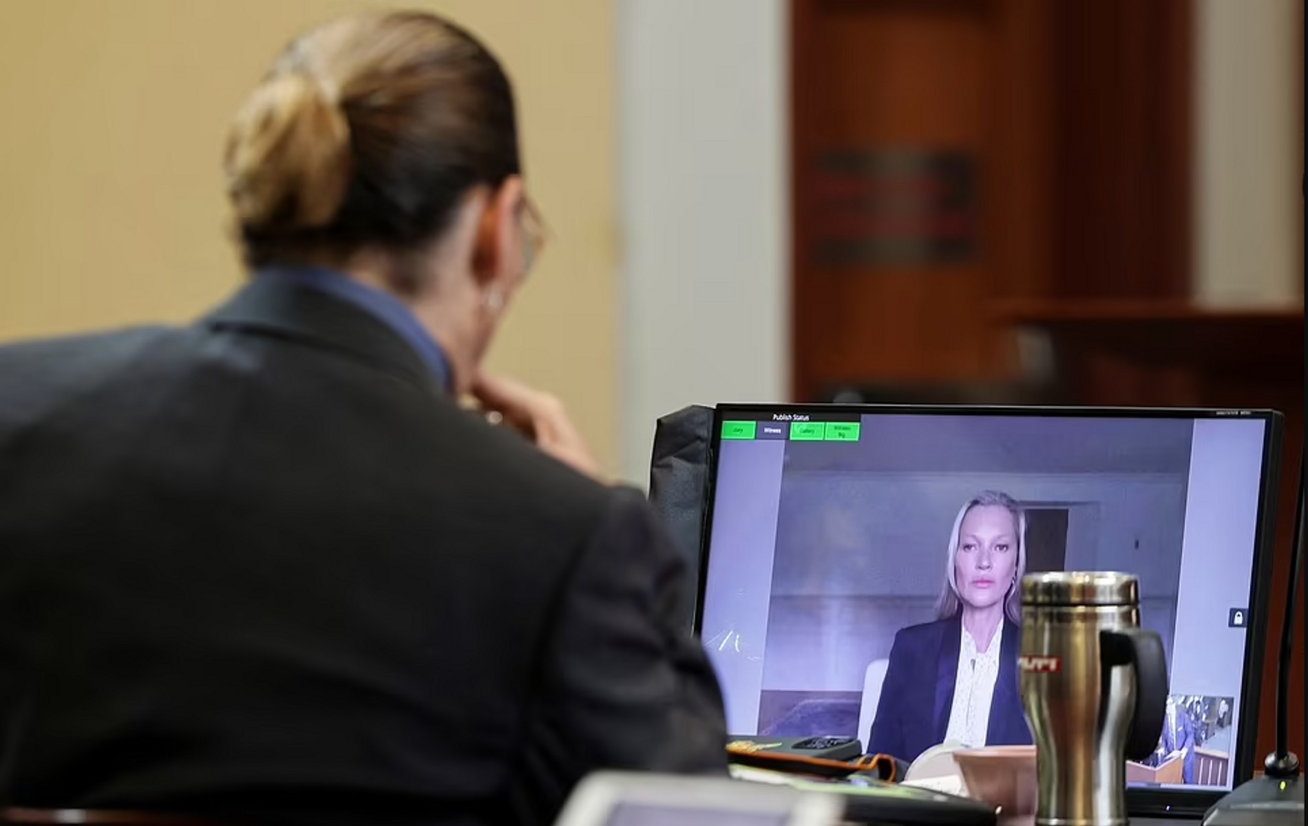 Кейт пришла, чтобы опровергнуть слухи о том, что Депп столкнул ее с лестницы во время их отдыха на Ямайке. Дело в том, что на одном из заседаний Херд, давая показания, вспомнила эту историю: актриса поведала, мол, она боялась, что Джонни столкнет ее сестру с лестницы во время бурного спора. Как пример ей на ум пришли слухи про Мосс. Модель, которая встречалась с актером с 1994 по 1998 год, заявила, что все это неправда — тогда она просто поскользнулась на влажной после дождя лестнице.