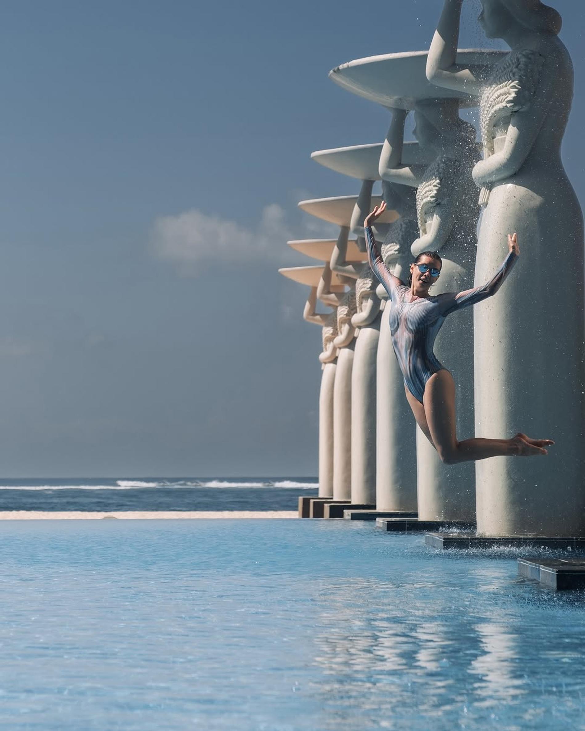 Актриса Катерина Шпица отметила 40-летие фотосессией в купальнике на Бали. Артистка сфотографировалась, стоя в бассейне, и даже воспарила в прыжке ради эффектного контента. Фотографии звезда сопроводила философским постом.