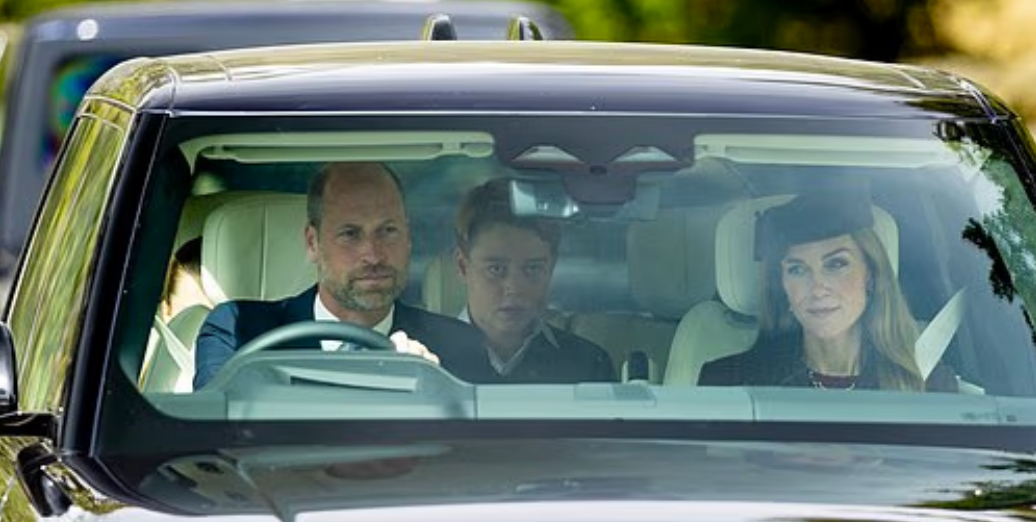 Фотографы засняли герцогиню во время поездки на церковную службу в Балморал. В автомобиле, которым управлял принц Уильям, также находились их дети — принц Джордж, Луи и принцесса Шарлотта.