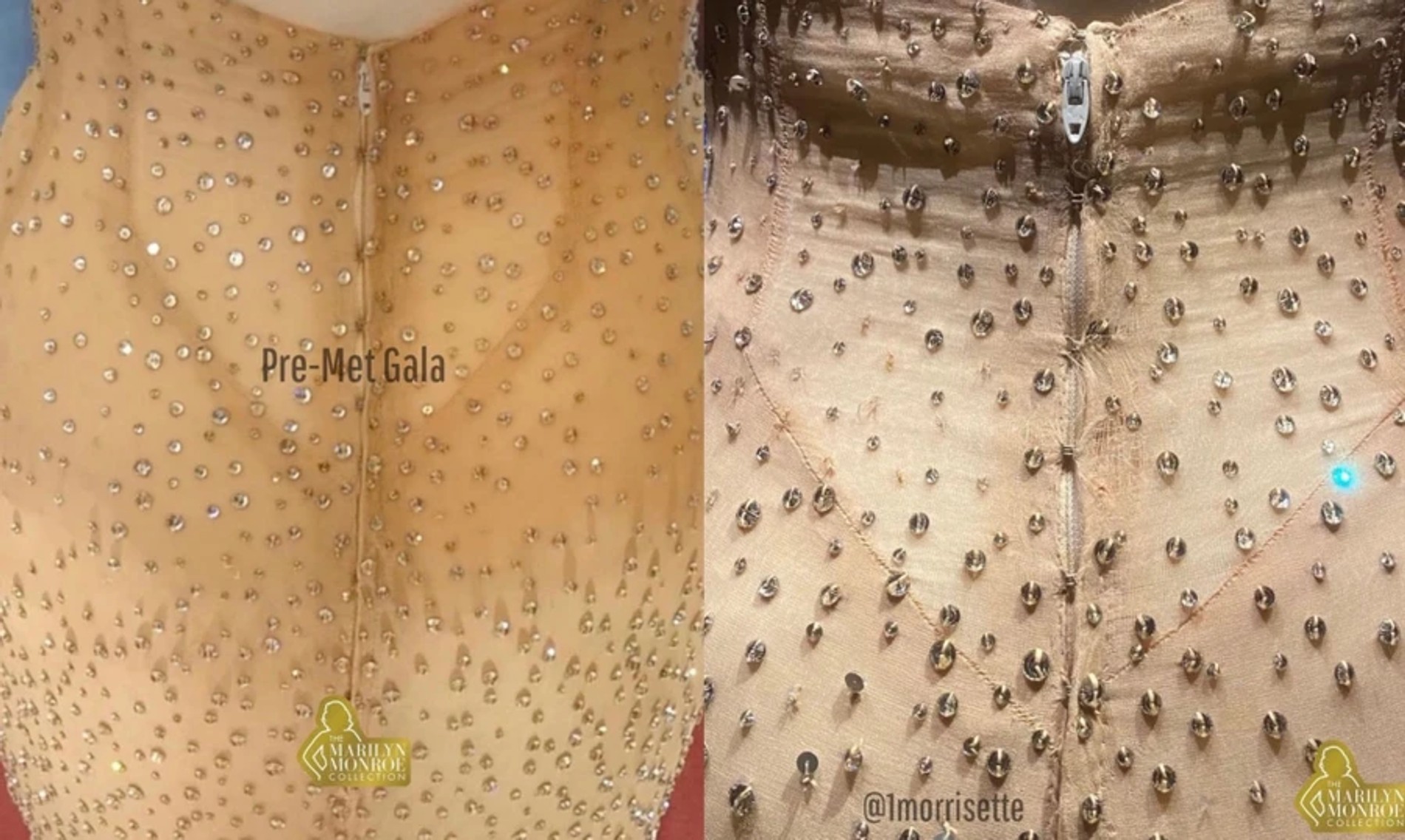Чего не отнять у Кардашьянов, так это таланта оказываться в центре скандалов. На этот раз поводом стало платье Мэрилин Монро, в котором Ким решила блеснуть на Met Gala. Все бы ничего, но несколько дней назад издание Pop Cave опубликовало фото наряда до и после бала. Миллионы пользователей заметили разъехавшиеся швы и нити вместо драгоценных камней.