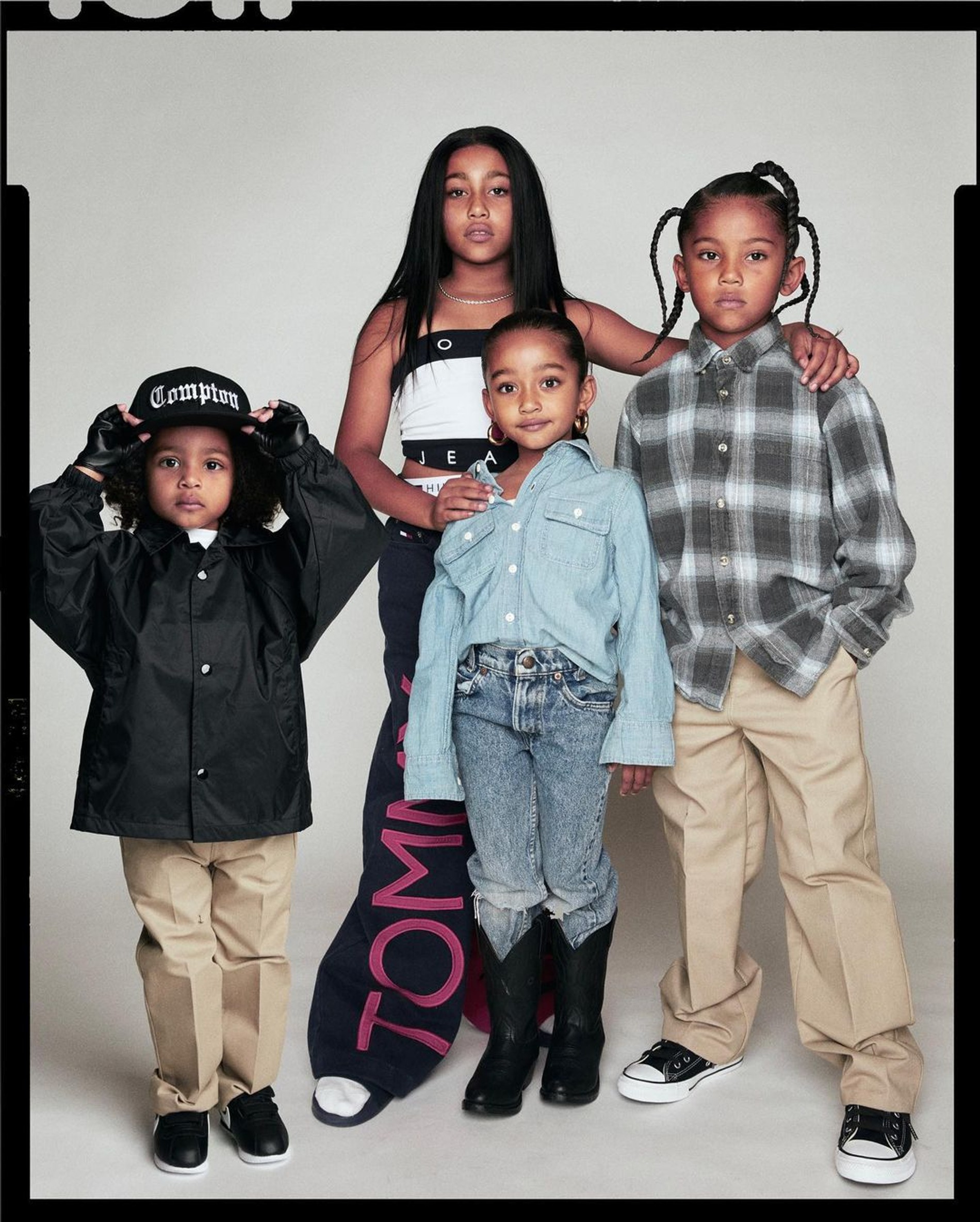 Звездная семейка категорически отказывается исчезать из новостей. На этот раз поводом для обсуждения стали костюмы на Хеллоуин, которые Ким выбрала для своих четверых детей. К празднику она нарядила их в образы легендарных темнокожих музыкантов: 9-летняя Норт примерила костюм принцессы R’n’B Алии, 6-летний Сейнт стал Снуп Доггом, 4-летняя Чикаго перевоплотилась в икону 80-х Шаде, а 3-летнему Псалму достался наряд рэпера Eazy-E.