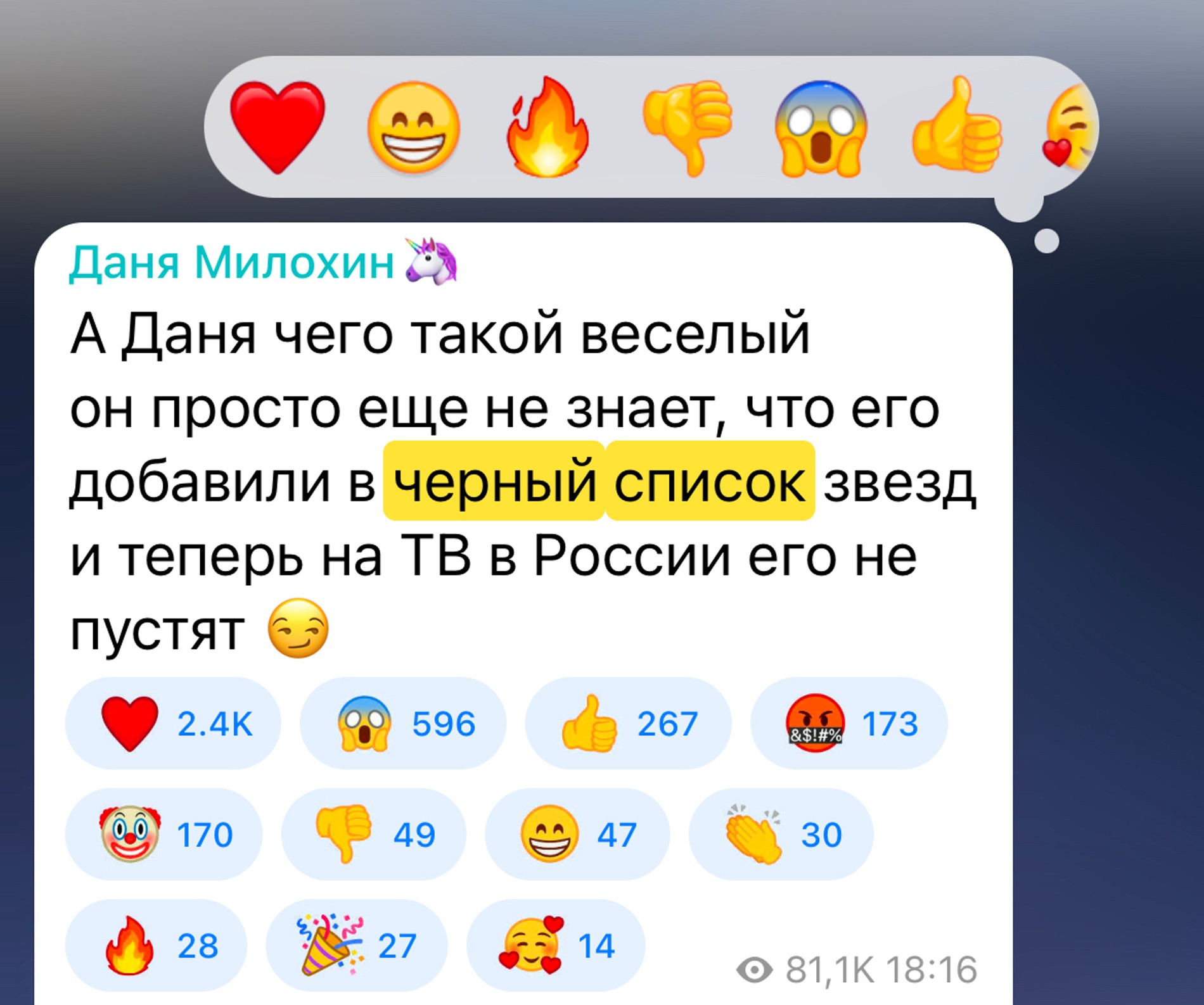 Даня Милохин о черном списке на ТВ Фото: телеграм-канал тиктокера