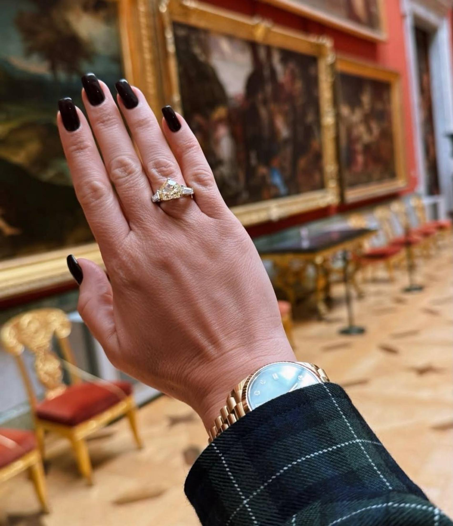 Накануне Ксения Бородина поделилась радостной новостью: она выходит замуж! Николай Сердюков сделал ей предложение руки и сердца в одном из самых красивых мест страны — Эрмитаже, у часов с павлином, работающих более 200 лет. Телеведущая показала романтичные кадры в Инстаграме*, а в своем телеграм-канале похвасталась помолвочным кольцом с желтым бриллиантом внушительных размеров.