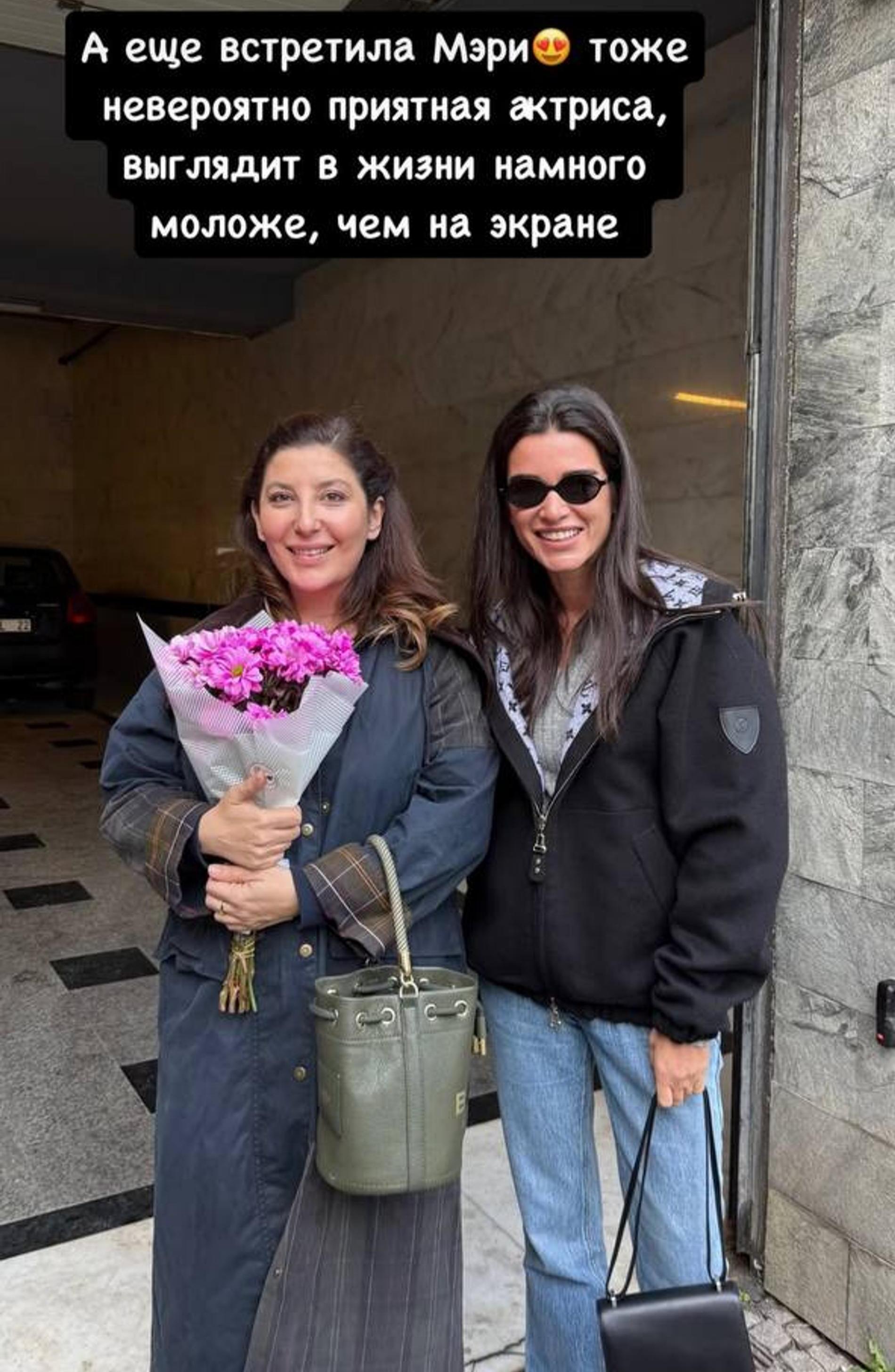 «Ну такая она приятная и милая, наша Нурсема. Любят не только в Турции, но и у нас. А в жизни очень милая и приятная Джерен», — поделилась впечатлениями от общения с кумиром Бородина. Кроме того, в сторис блогер опубликовала совместный снимок с еще одной знаменитостью, хорошо знакомой фанатам турдизи, — Шебнем Бозоклу. «Тоже невероятно приятная актриса, выглядит в жизни намного моложе, чем на экране», — объяснила инстадива.