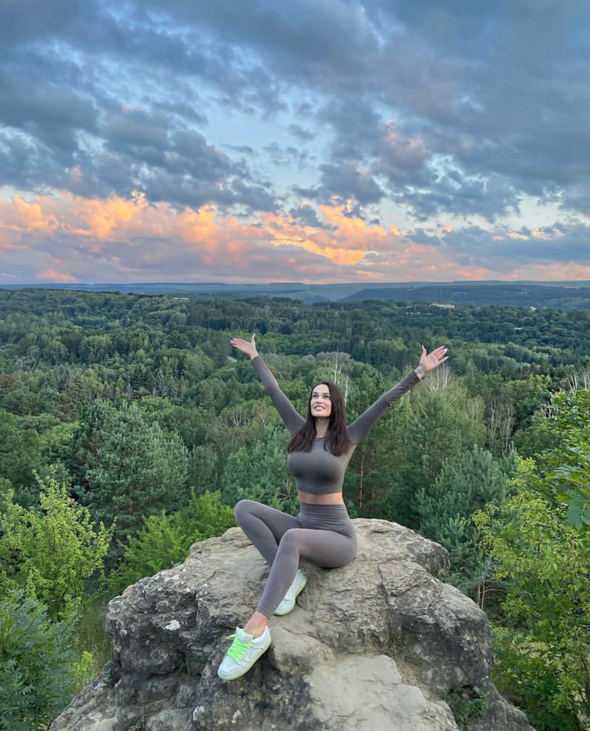Между лежанием на шезлонгах Алена Водонаева отправилась не куда-нибудь, а покорять горы. В Кисловодск она приехала в популярный оздоровительный центр Mayerveda, куда за этот год успели слетать, кажется, все популярные блогеры. Подпитка энергией в местных антуражах обходится от 15 тысяч в день — хороший вариант на уик-энд. Недалеко от Кисловодска находится гора Эльбрус. Не посмотреть ее, будучи там, — сущее преступление. Совершать его Алена, конечно, не стала.