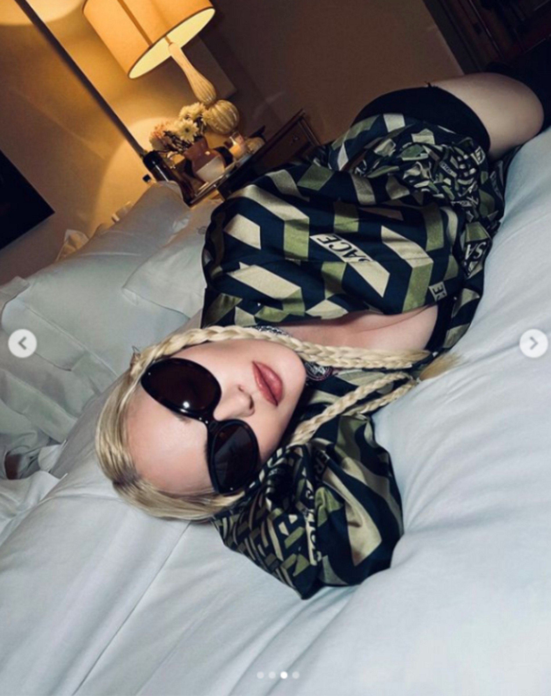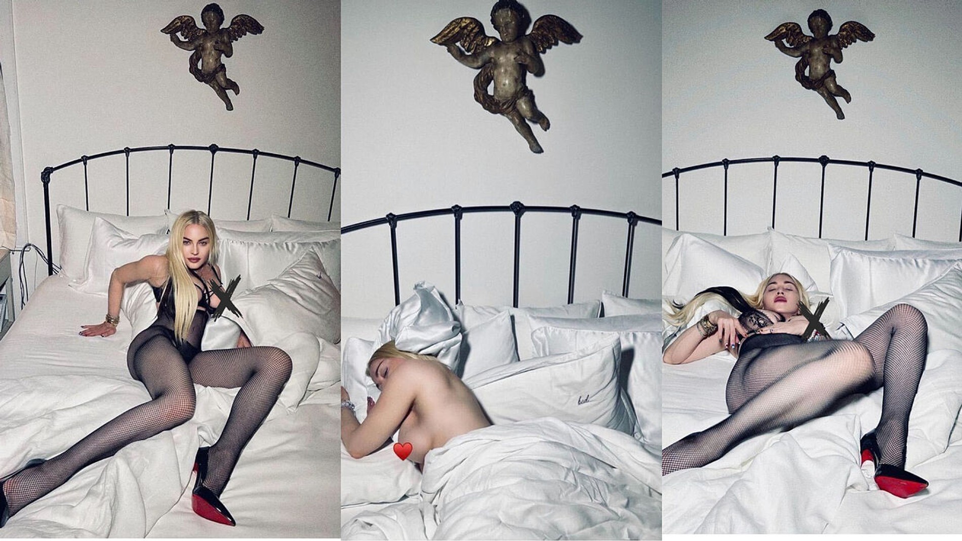 Мадонна снова задает жару в Инстаграме (запрещен в РФ): певица выложила очередные фривольные фотографии. На них 63-летняя поп-икона позирует на своей кровати в халате и нижнем белье.