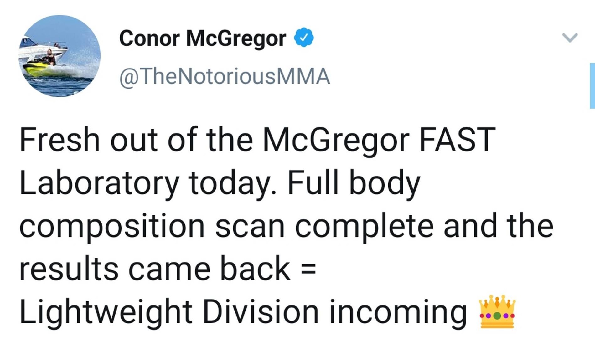Конор Макгрегор будет драться в легком весе после того, как Хабиб завершил карьеру