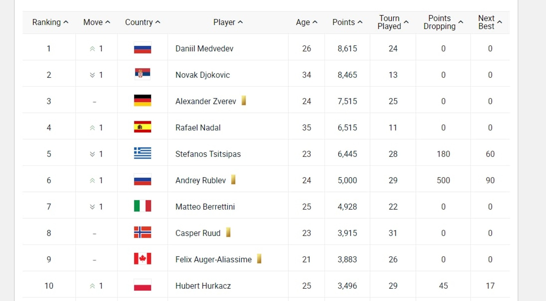 Фото: турнирная таблица АТР (Ассоциация теннисистов-профессионалов)