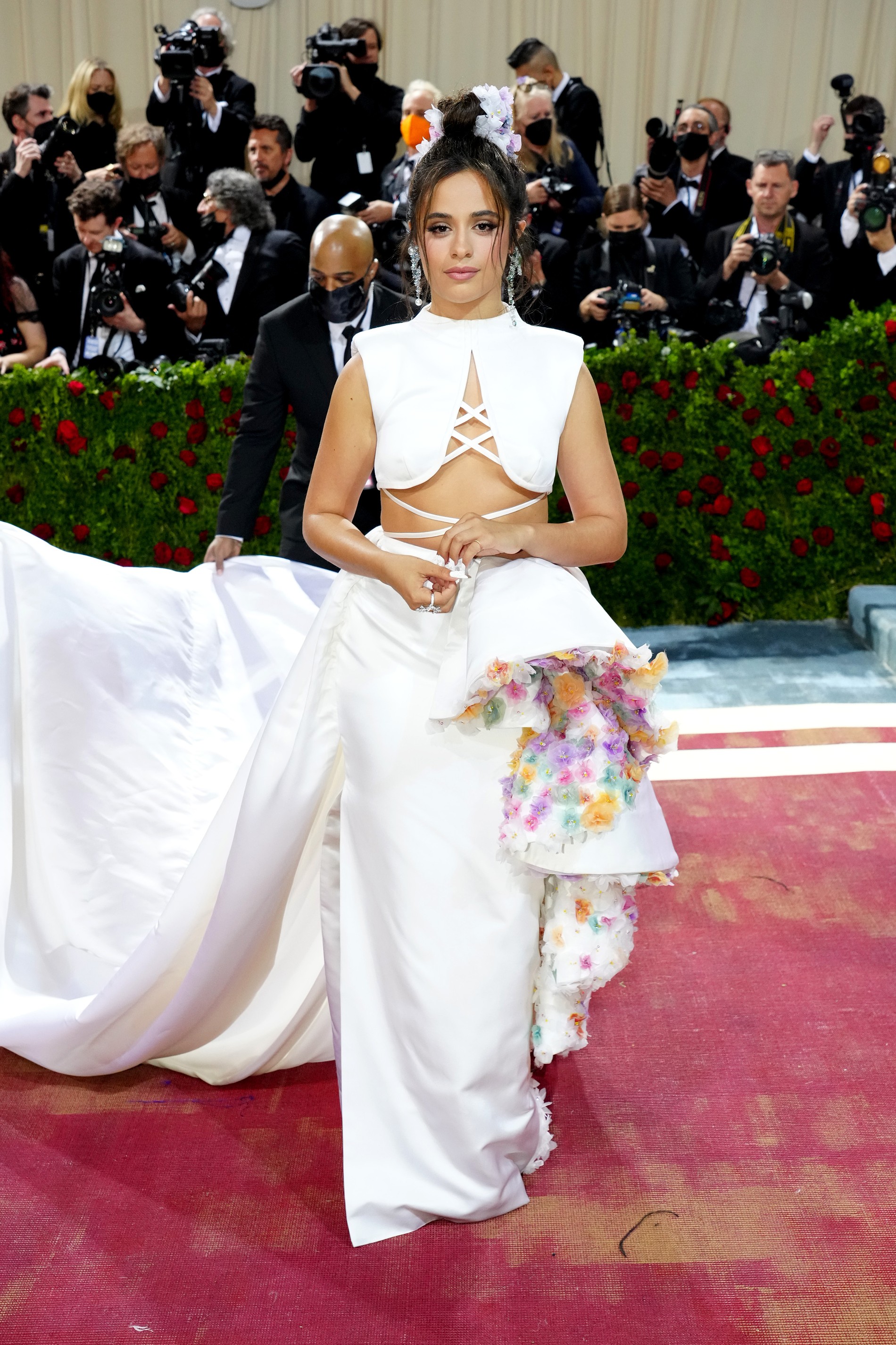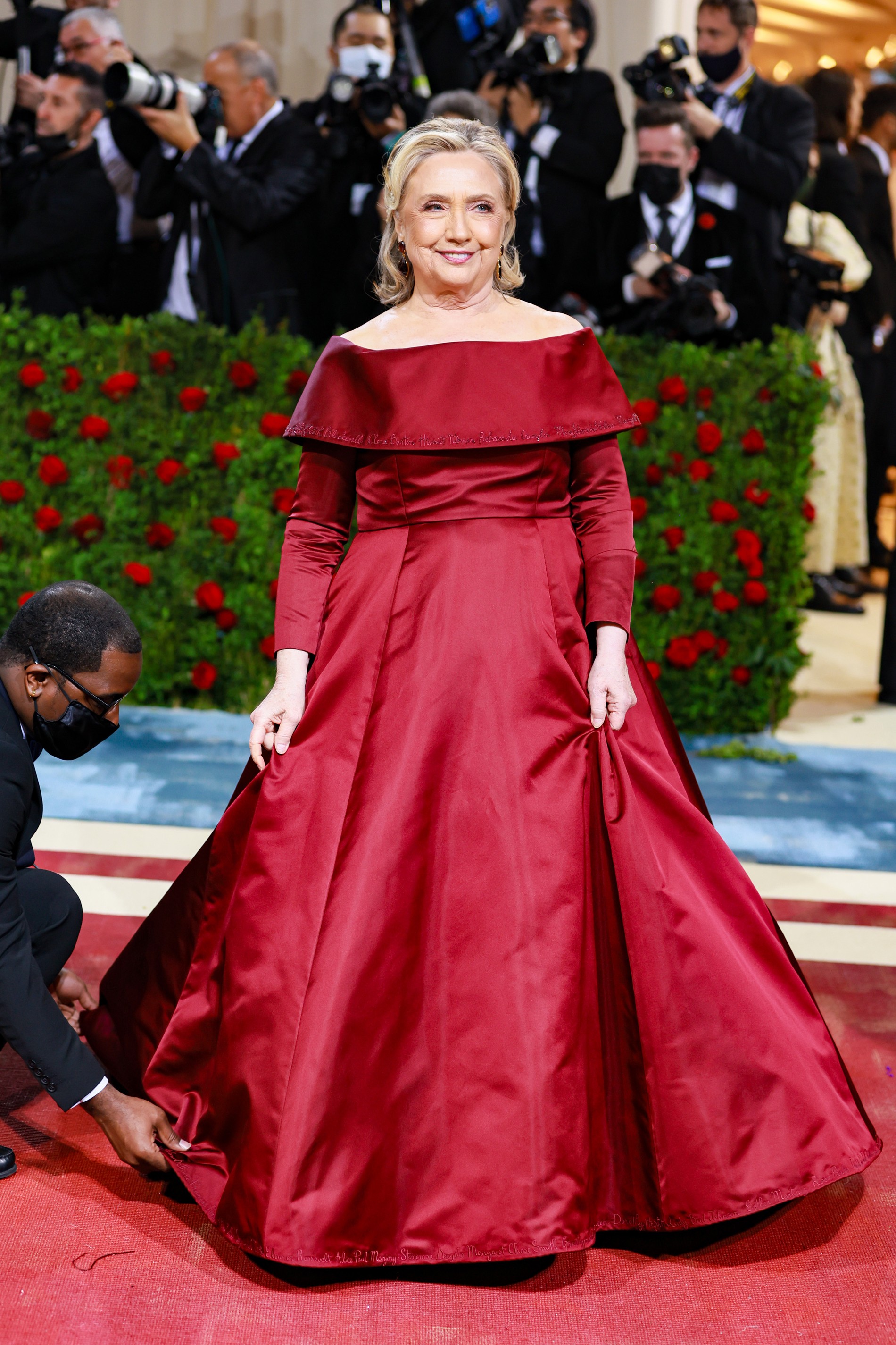На ковровую дорожку, выкрашенную в цвета американского флага, выходят звезды высшей категории. Ежегодно Винтур лично согласовывает каждого из 600 гостей, строго следя за репутацией той или иной знаменитости. Сама хозяйка бала вышла на дорожку в кастомном наряде Chanel, который сильно напоминает ее образ на Met Gala в 2019 году.