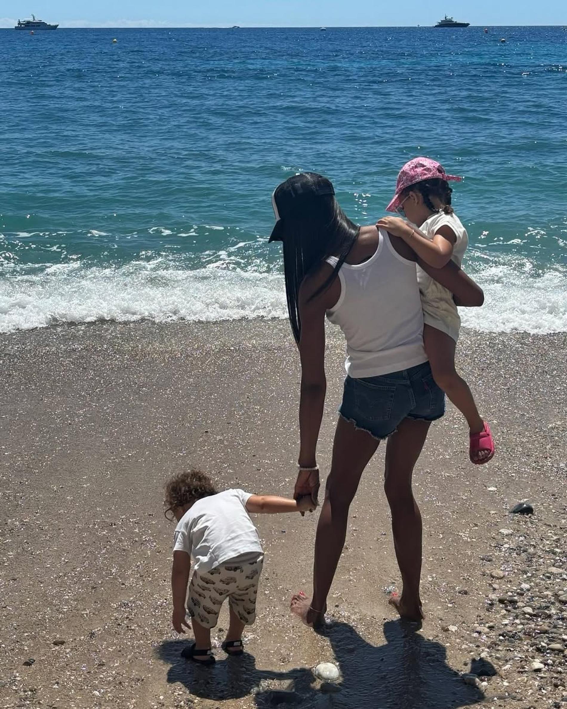Наоми Кэмпбелл редко радует подписчиков снимками с наследниками, но в последнее время, похоже, решила изменить привычке. В апреле она поделилась в запрещённом в РФ Инстаграм кадрами совместного отдыха с детьми на яхте, а теперь опубликовала фото с прогулки по пляжу.