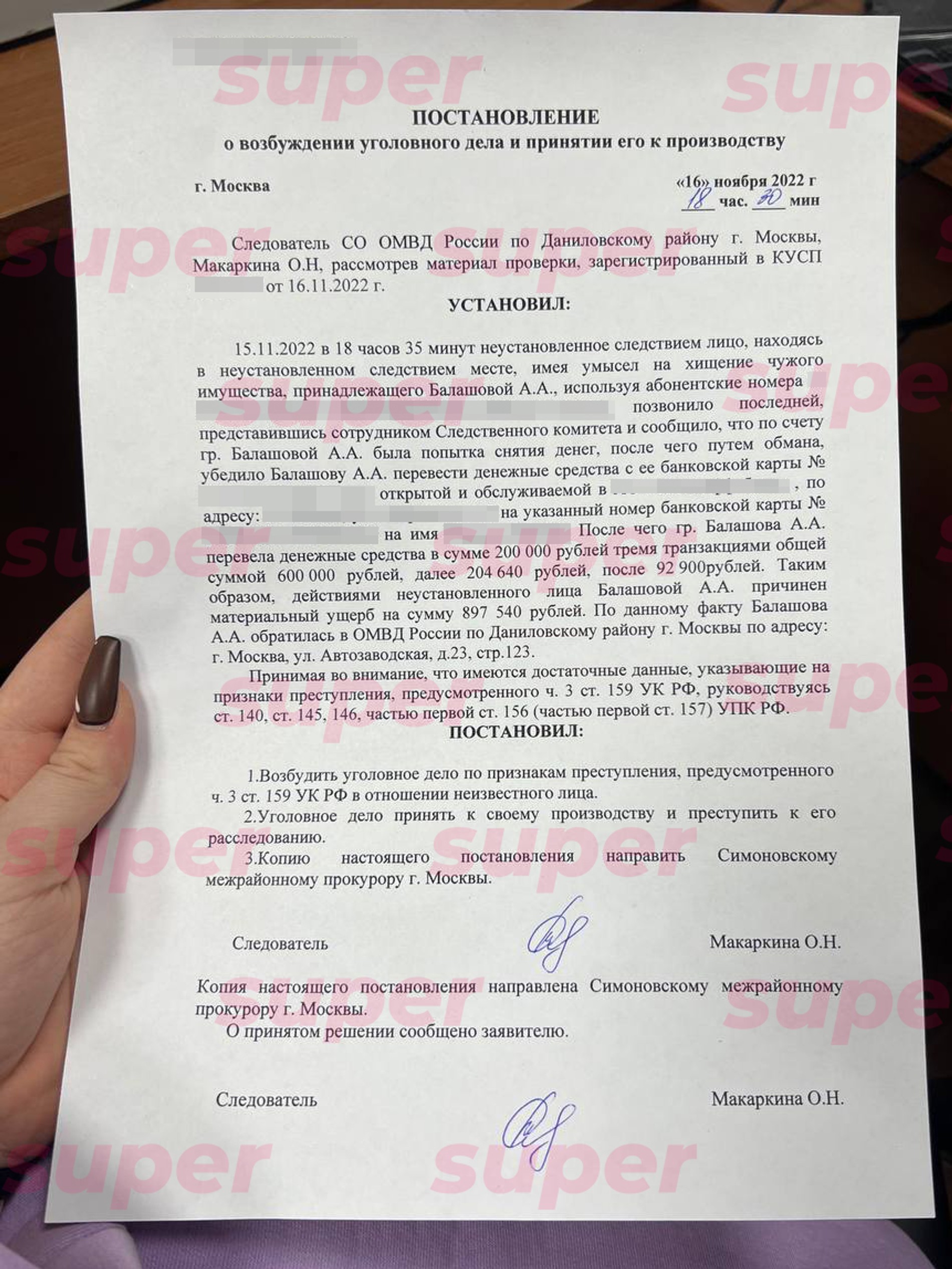Шансы вернуть деньги или найти злоумышленника, рассказывает Настя, сводятся к нулю. «Там очень сплоченная организация, у которой все схвачено», — раздосадовано делится с нами девушка. Настя отмечает, история стала для нее уроком на всю жизнь. Теперь уже настоящий следователь Даниловского района возбудил уголовное дело в отношении неизвестного лица, а сама тиктокер выступает потерпевшей.