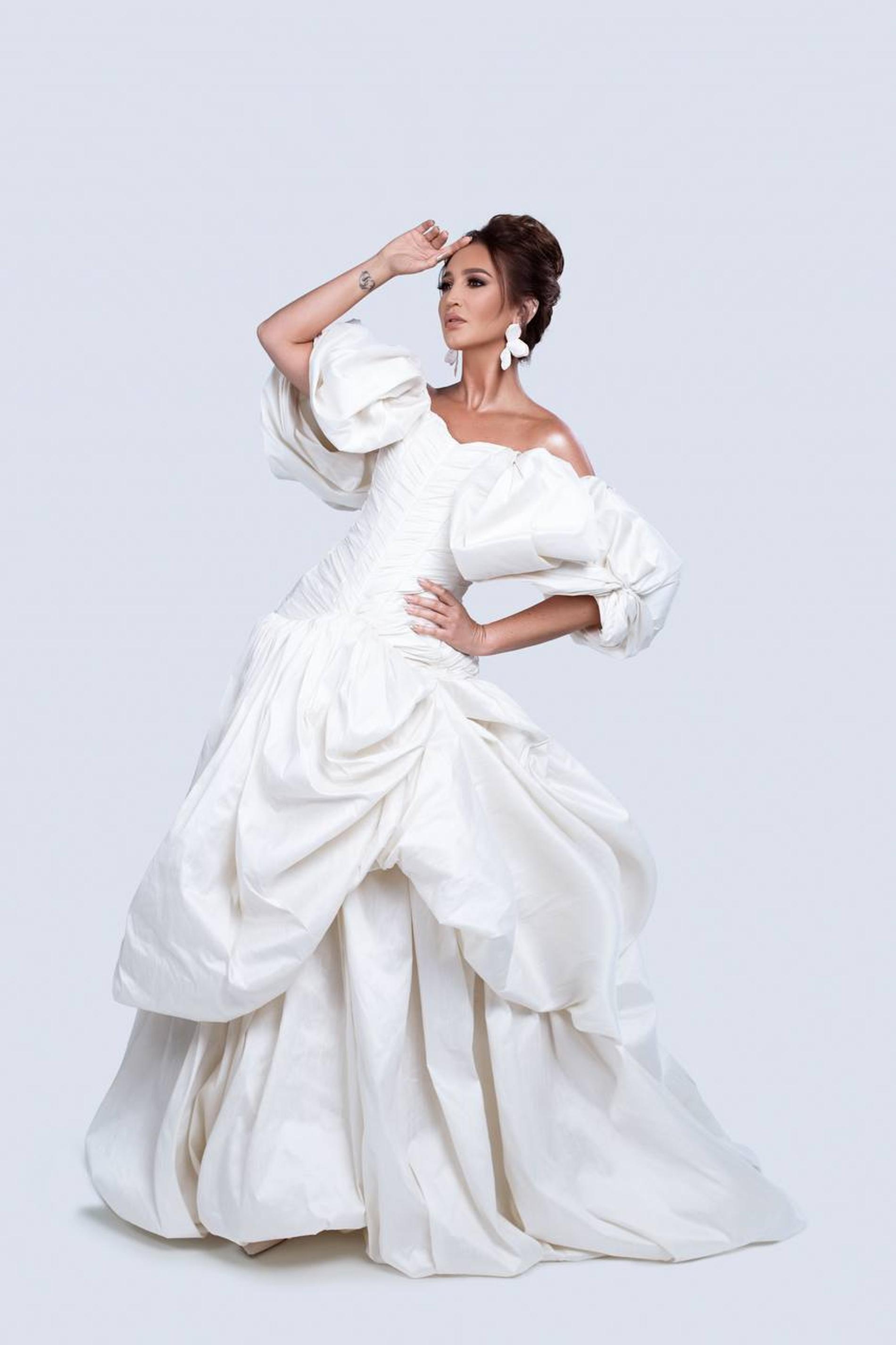 На фотографиях Бузова позирует в белоснежном приталенном платье с открытыми плечами. Образ дополнили высокая прическа и нежные аксессуары, подчеркивающие романтичный стиль съемки.