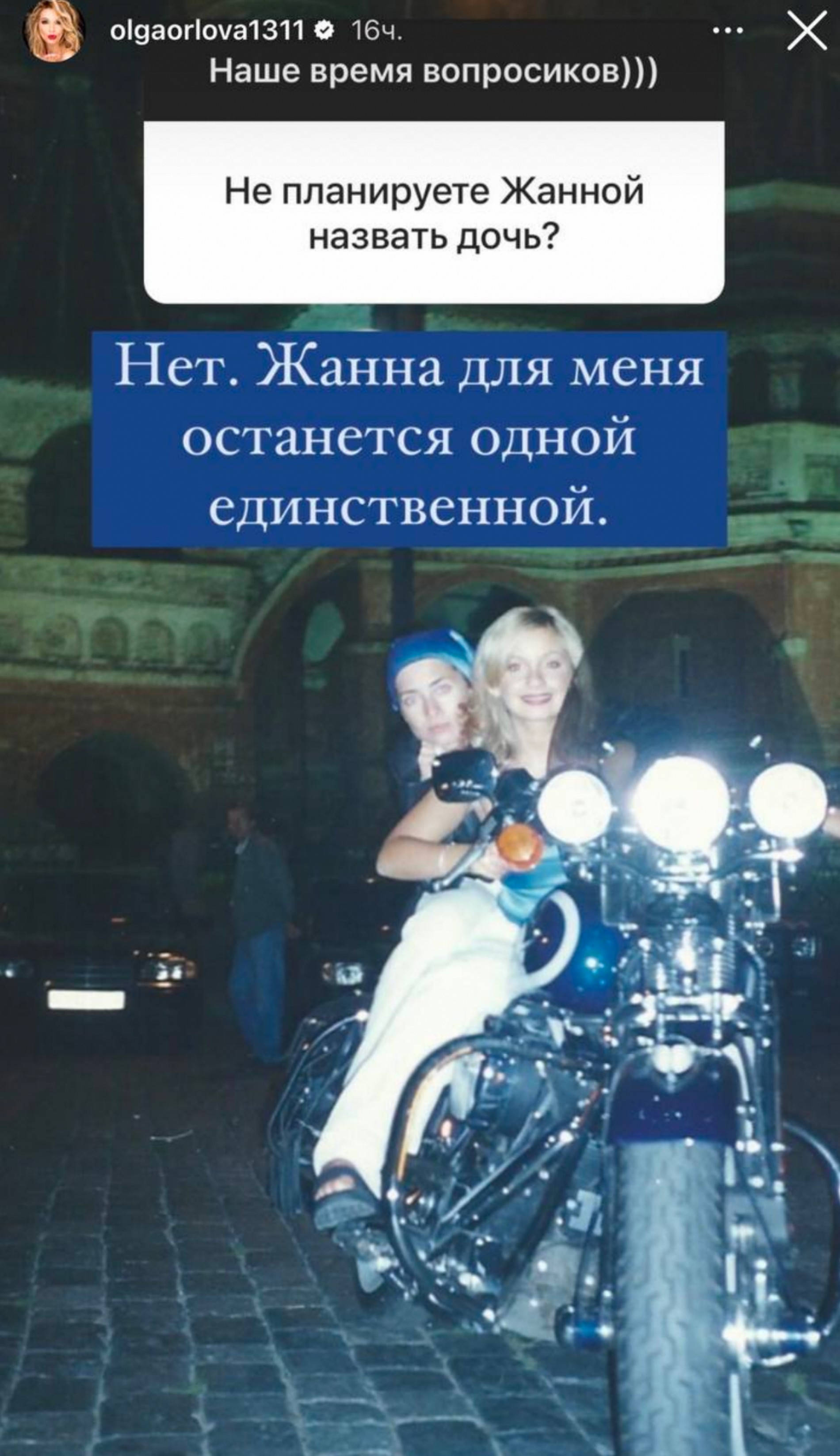 На вопрос об имени для дочери Ольга Орлова ответила архивным снимком с Жанной Фриске