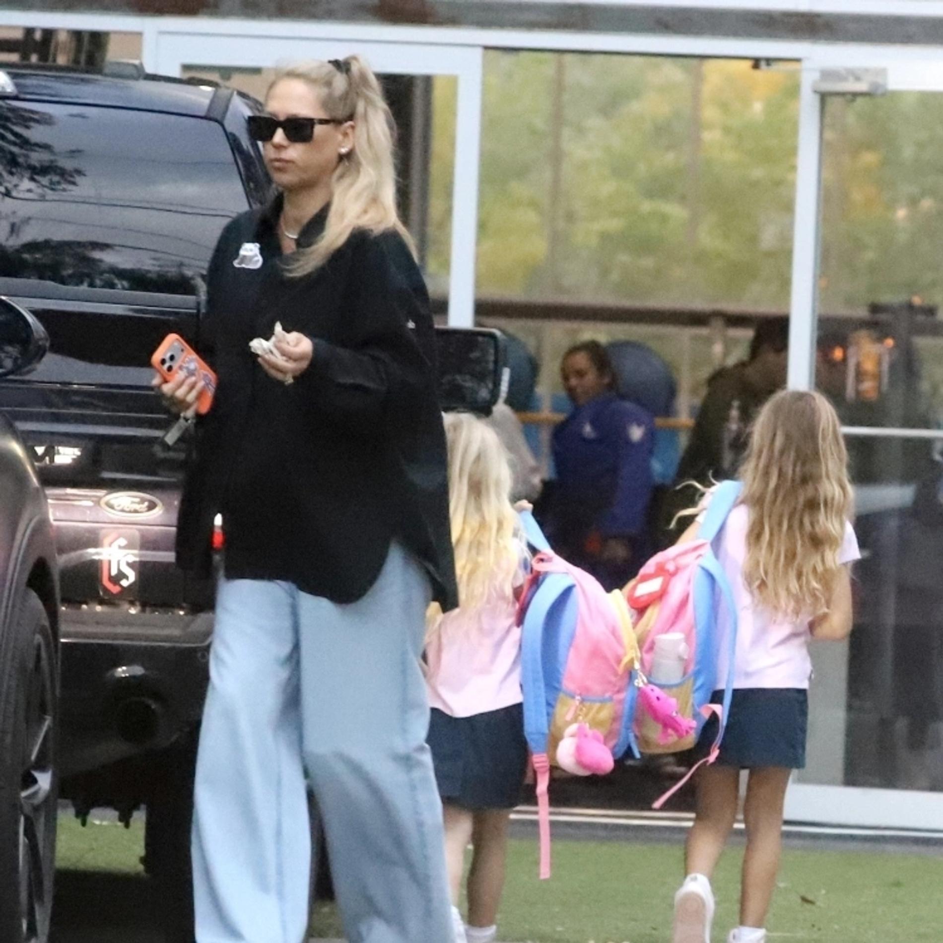 На днях 44-летнюю теннисистку заметили папарацци в Майами — Курникова привезла детей к школе на черном Porsche. Спортсменка была одета максимально неприметно: свободная черная рубашка оверсайз и голубые джинсы помогли скрыть заметно округлившийся живот. Волосы она собрала в хвост, а глаза спрятала за темными очками.