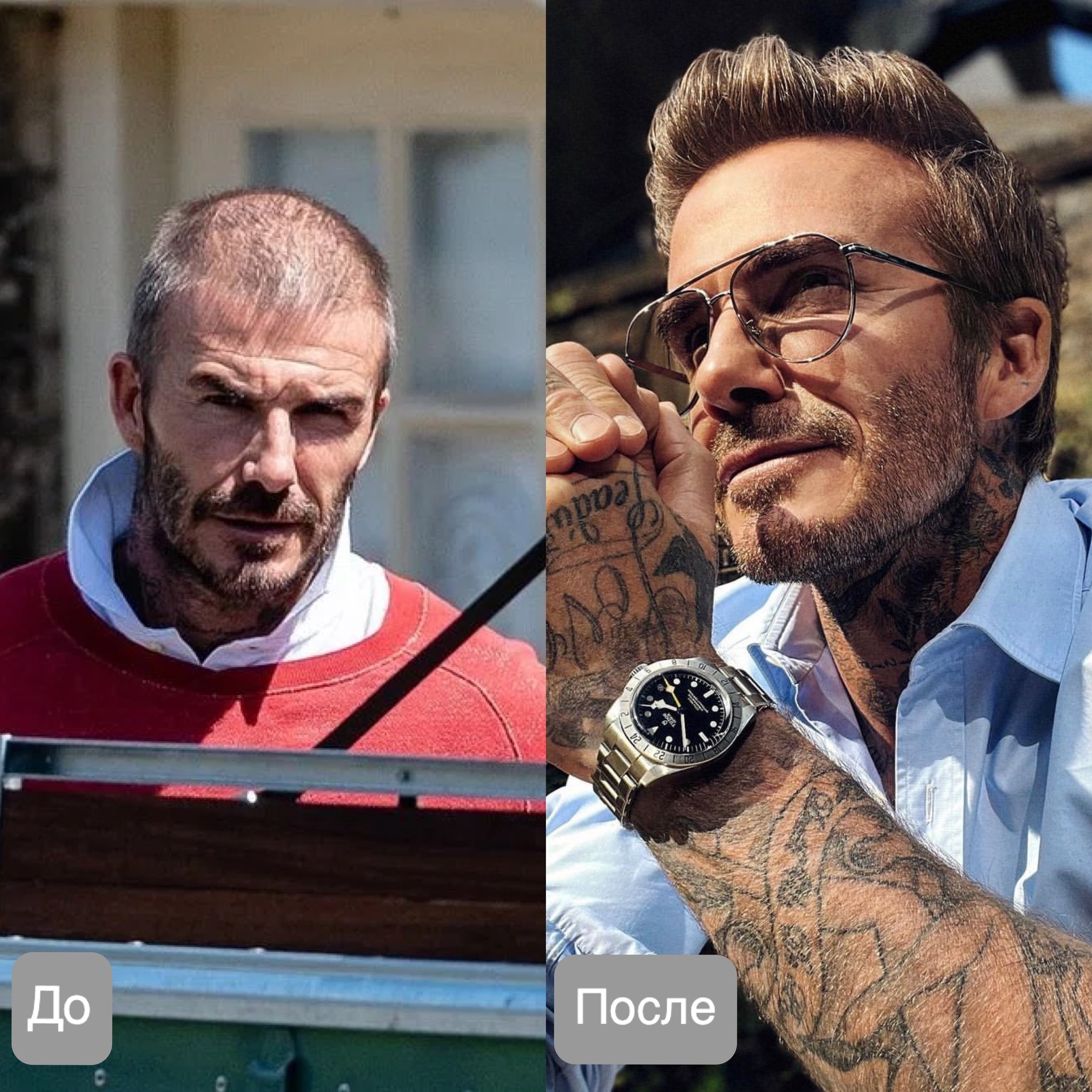 Да, сами в шоке. Бекхэм всегда удивлял поклонников не только своей игрой, но и разнообразными прическами: косички, ирокез, стрижка под ноль. В общем, бывало всякое, но в 2018 году таблоиды запестрели фотографиями заметно лысеющего футбольного секс-символа. Пока все шептались, Дэвид быстро взялся за пересадку волос — иначе как объяснить его густую шевелюру в свежих рекламных кампаниях? Сам он свое преображение никак не комментирует, зато в профессиональных кругах определили технику, к которой прибегнул футболист. FUE — безболезненная пересадка без разрезов и швов, волоски берут и вживляют поштучно микропинцетом.